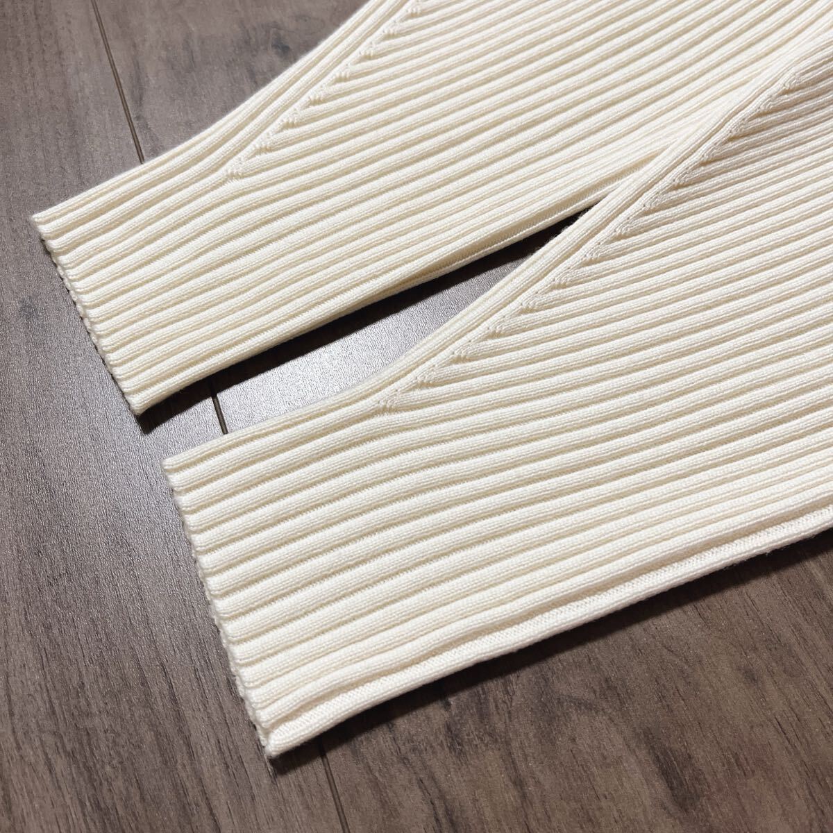 適度な厚みとハリ感、すっきりとした表情が特徴の梳毛のリブニットシリーズ。