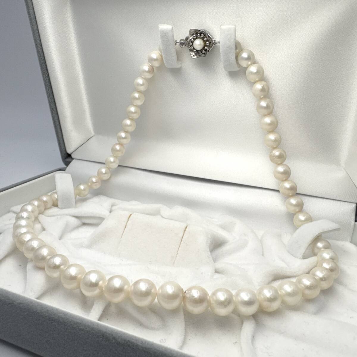【テリ最強】 7.5-8.0mm アコヤ 本真珠ネックレス 42.0cm SILVER刻印 37.1g ホワイト/クリーム系 パール あこや ジュエリー 宝石 1SEND