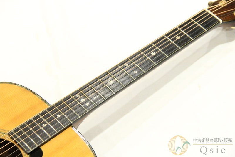 | 商品説明 | YAMAHA FG-403 ヤマハ FG-403 アコースティックギターが入荷しました。 ヤマハのフォークギター黄金期にあたる80年代初頭に製造されたFG-403。 本器はシリアル「10404」から1981年4月4日製と判別できる個体で、当時の国産ならではの丁寧な作り込みが感じられる一本です。 トップには単板スプルース、サイド・バックにはインディアンローズウッドを採用。 ローズ指板とナトーネックの組み合わせにより、 豊かな中低域と艶やかな高音を実現しています。 スケールは636mmとやや短めで、演奏性の高さも魅力です。 外観には経年に伴う小傷や使用感が見られますが、年代を考慮すれば良好なコンディションを保っております。 ビンテージの国産ヤマハらしい、芯がありながらも伸びやかなサウンドをお楽しみいただけます。 弦高が高いため、ハイポジションでのプレイがやや難しく 今回は訳ありのため、大変お求めやすいお値段設定とさせていただきました。 修理が可能な方や現状で用途に適うという方、 またはパーツ取りが目的の方には大変おすすめでございます。 【仕様】 Body Top:Solid Spruce Body Side&Back:Indian Rosewood Neck:Nato Fingerboard:Rosewood Nut Width:43mm Scale Length:636mm Number of Frets:20F 【状態】 使用に伴う擦れ傷、小さな打痕はございますが、その他目立ったダメージはなく、中古品としましては良好な外観です。 フレット残り:7割程度 トラスロッド:余裕あり 電気系統:搭載なし ネック:波打ち 弦高(12F):6弦側 4.0mm・1弦側 3.0mm サドル高:6弦側 2.3mm 1弦側1.6mm ~~ココが訳あり~~ ネックに波打ちが発生しており、弦高がかなり高いです。 こちらのお品は上記の理由により、訳あり品として販売をさせていただいておりますが、一通りの点検・クリーニング・調整はおこなっております。 これらを問題とされない方にとっては十分に価値のあるお品と存じます。 ※既出の点につきましてはその程度や思い違いに関わらず、初期不良保証や返品の対象とはなりません。予めご理解をお願いいたします。 「万が一、気に入らなければ返品OK!」で大変ご好評をいただいております、 通信販売における最大のご不安を払拭した『納得購入サポート™』ですが、 ヤフオク!におきましては、2020年2月1日よりサービスの提供を終了いたしました。 詳しくは、ヤフオク!でのサービス終了のお知らせ をご覧ください。 ヤフオク!でのご落札品は、当サービスの提供対象外でございます。 |