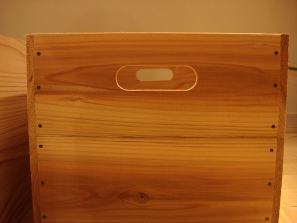 使いやすいように両サイド2ヶ所に約3×10㎝の取っ手をくりぬいています。