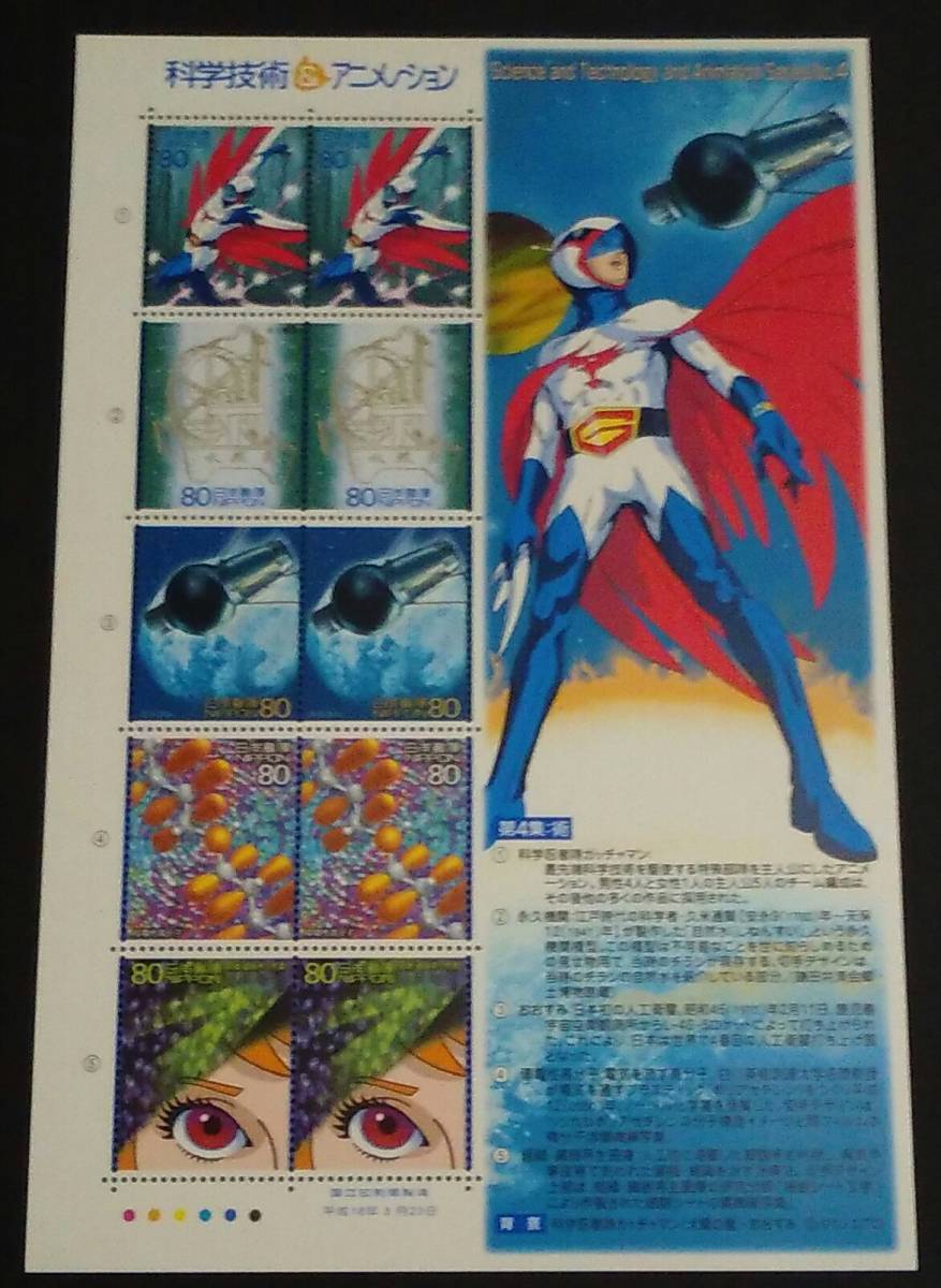 2004年・記念切手-科学技術とアニメ・ヒーロー・ヒロインシリーズ第4集(解説書付)シート(術・科学忍者隊ガッチャマン1)