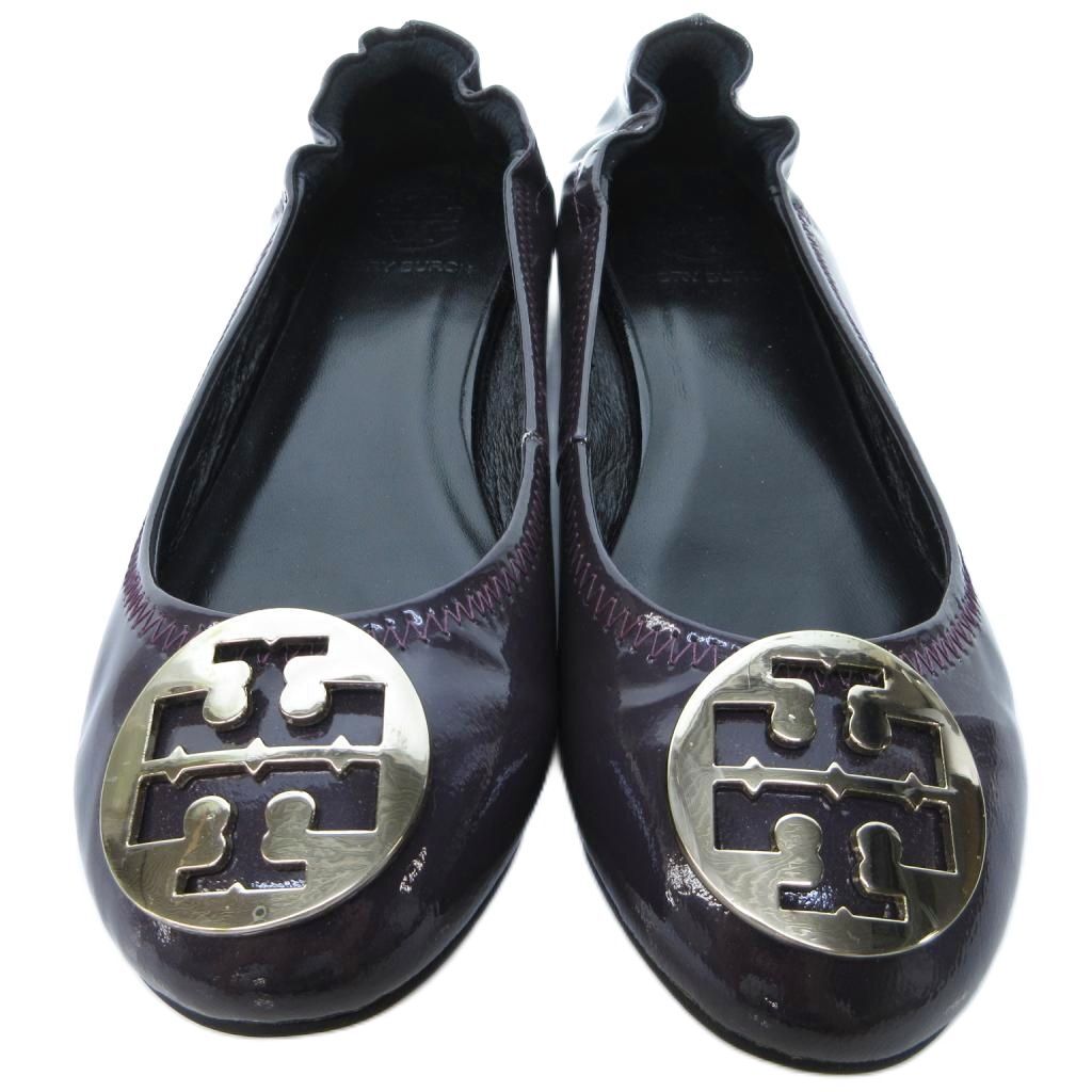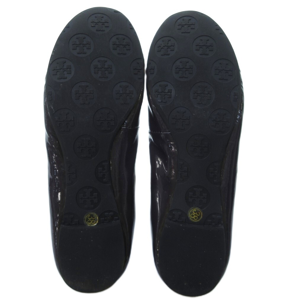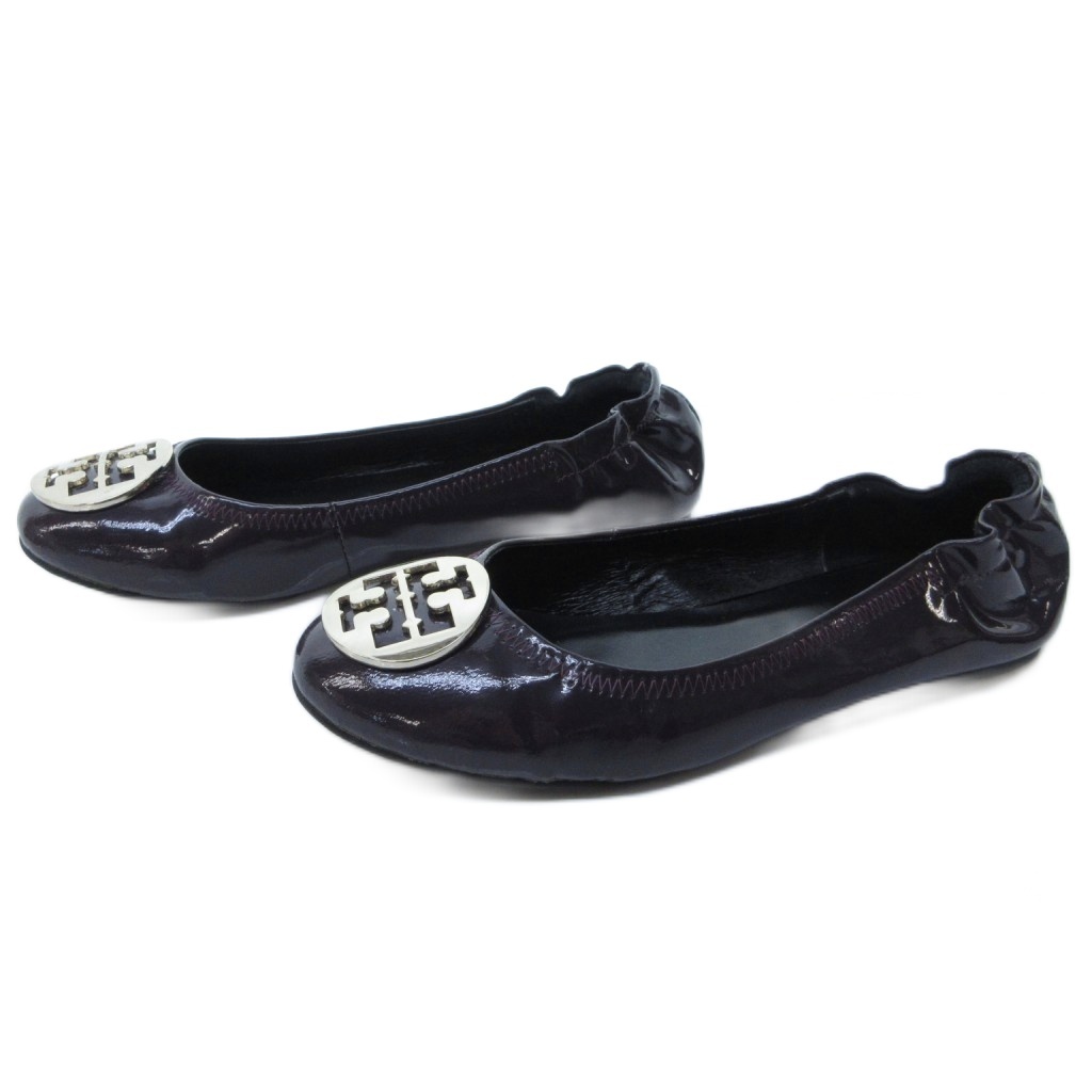 トリーバーチ TORY BURCH 美品 エナメル バレエシューズ フラットシューズ ロゴプレート 紫 パープル 約24cm IBO79