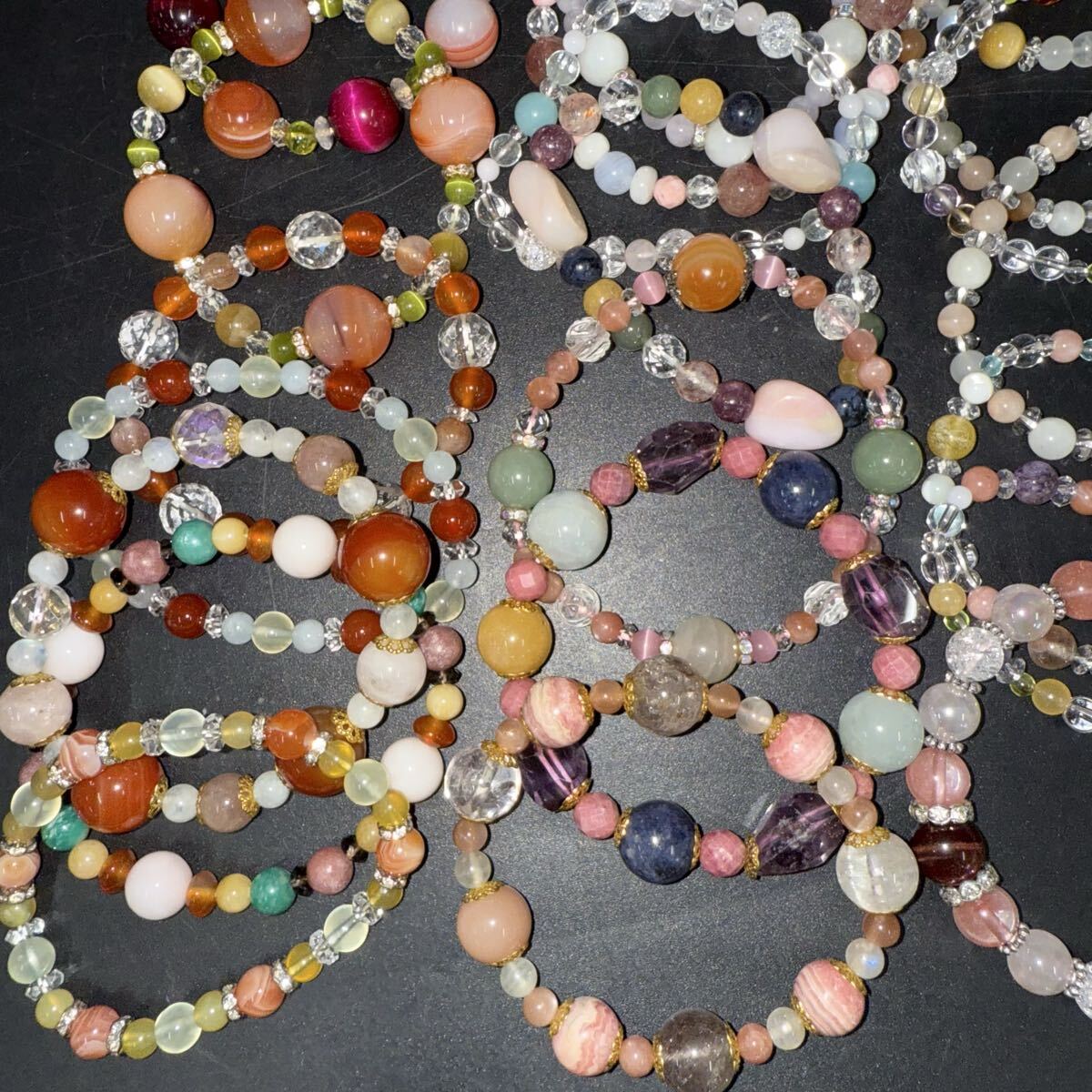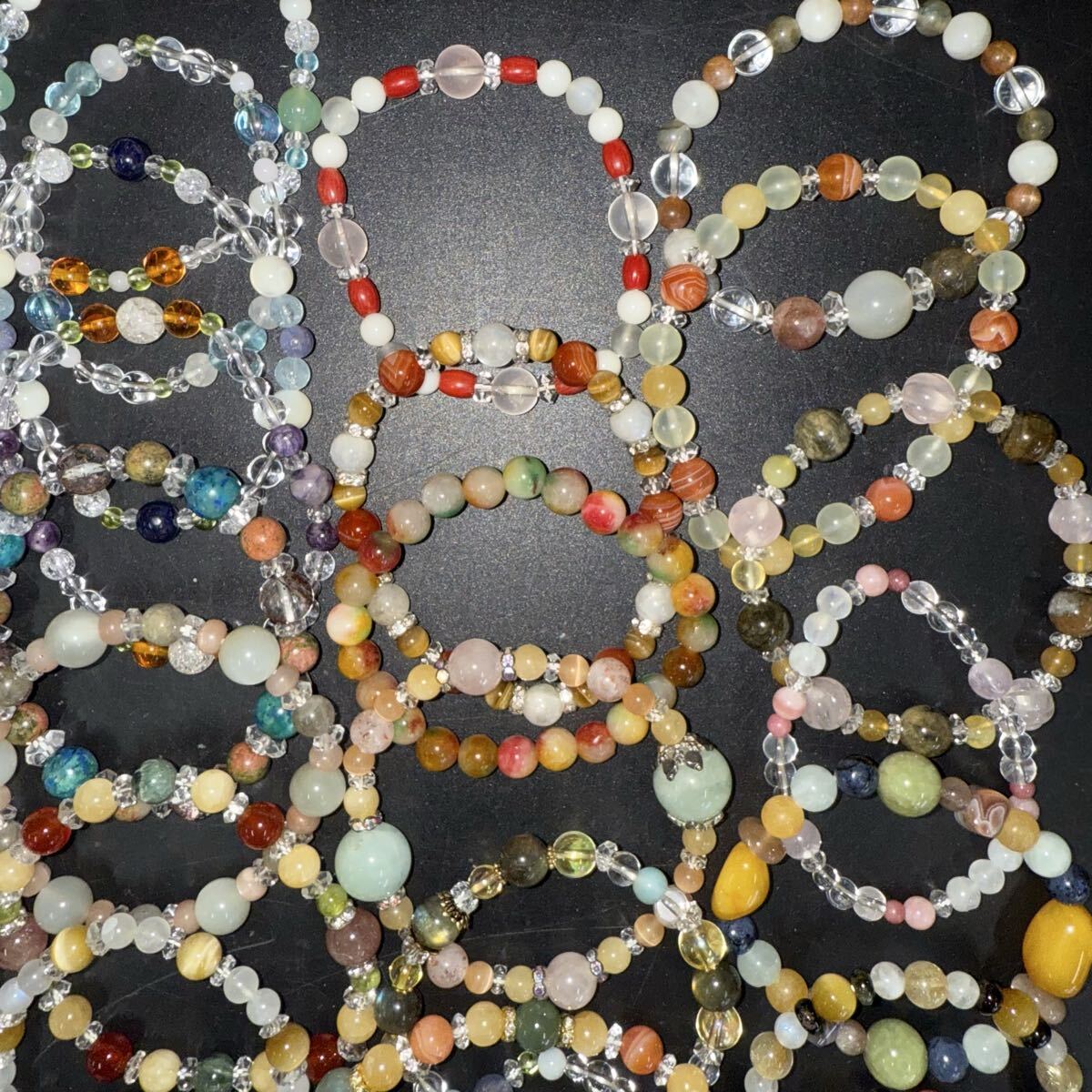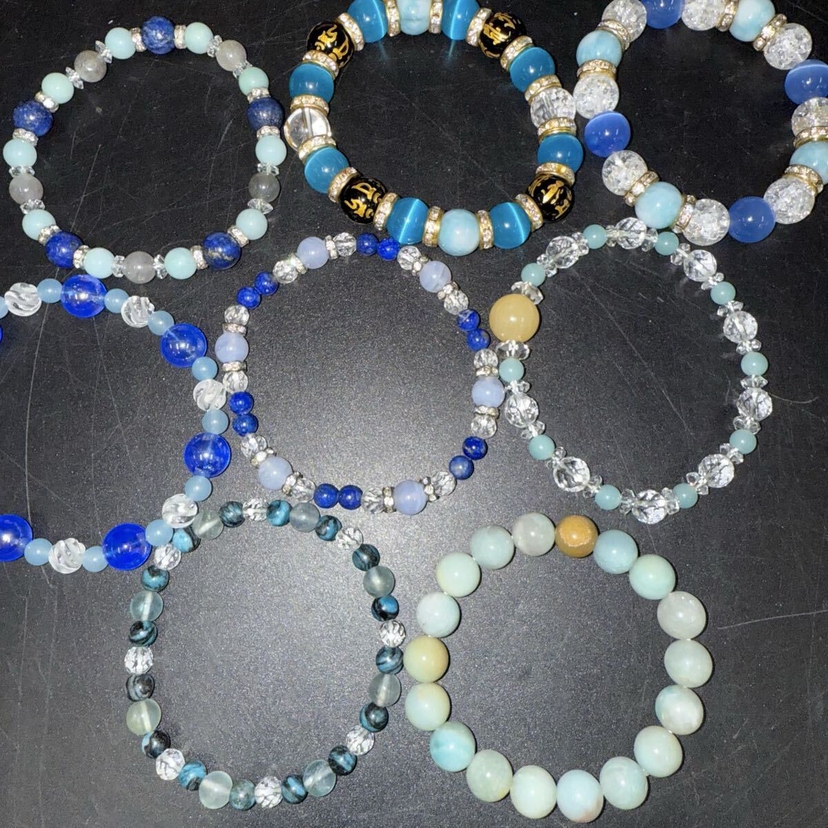 ※ブルー系は「冷静・知性・解放」、茶・オレンジ系は「信頼感・忍耐力」、グリーン系は、「穏やか・循環・安心感」、紫系は「感性・想像力・精神性」、ピンク系は「魅力UP・恋愛運」、クリア系は「精をクリアな状態にし、能力を高めたり厄払いをする」だそうです。