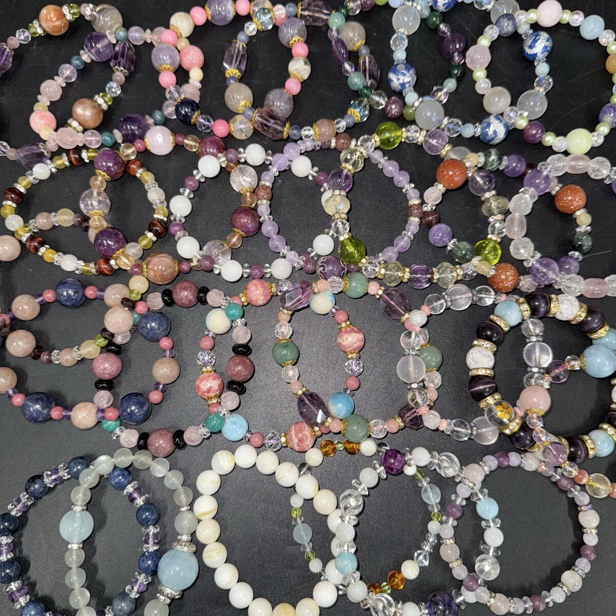 【A797-9】 天然石・パワーストーン・ブレスレット・開運浄化・数珠ブレスレット・水晶 青/茶/緑/紫/ピンク/クリア等 大量まとめ売り