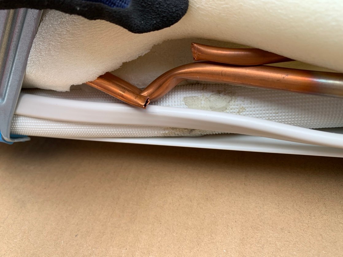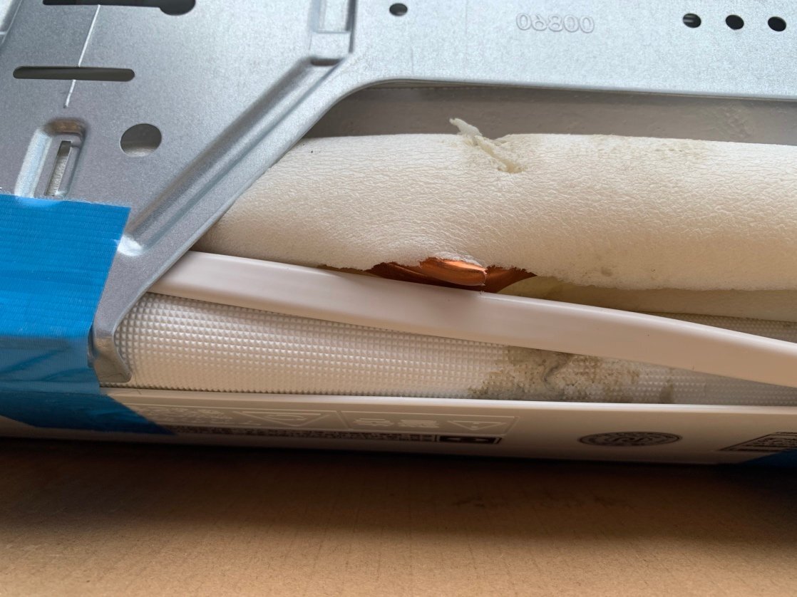 未使用品になりますが内機配管根元強度不足、強度がなく折れ、穴が開いております。