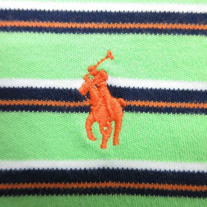 【商品名】 XL★古着 ラルフローレン 半袖 ブランド ポロ シャツ メンズ 90年代 90s ワンポイントロゴ 大きいサイズ コットン 黄緑他 ボーダー