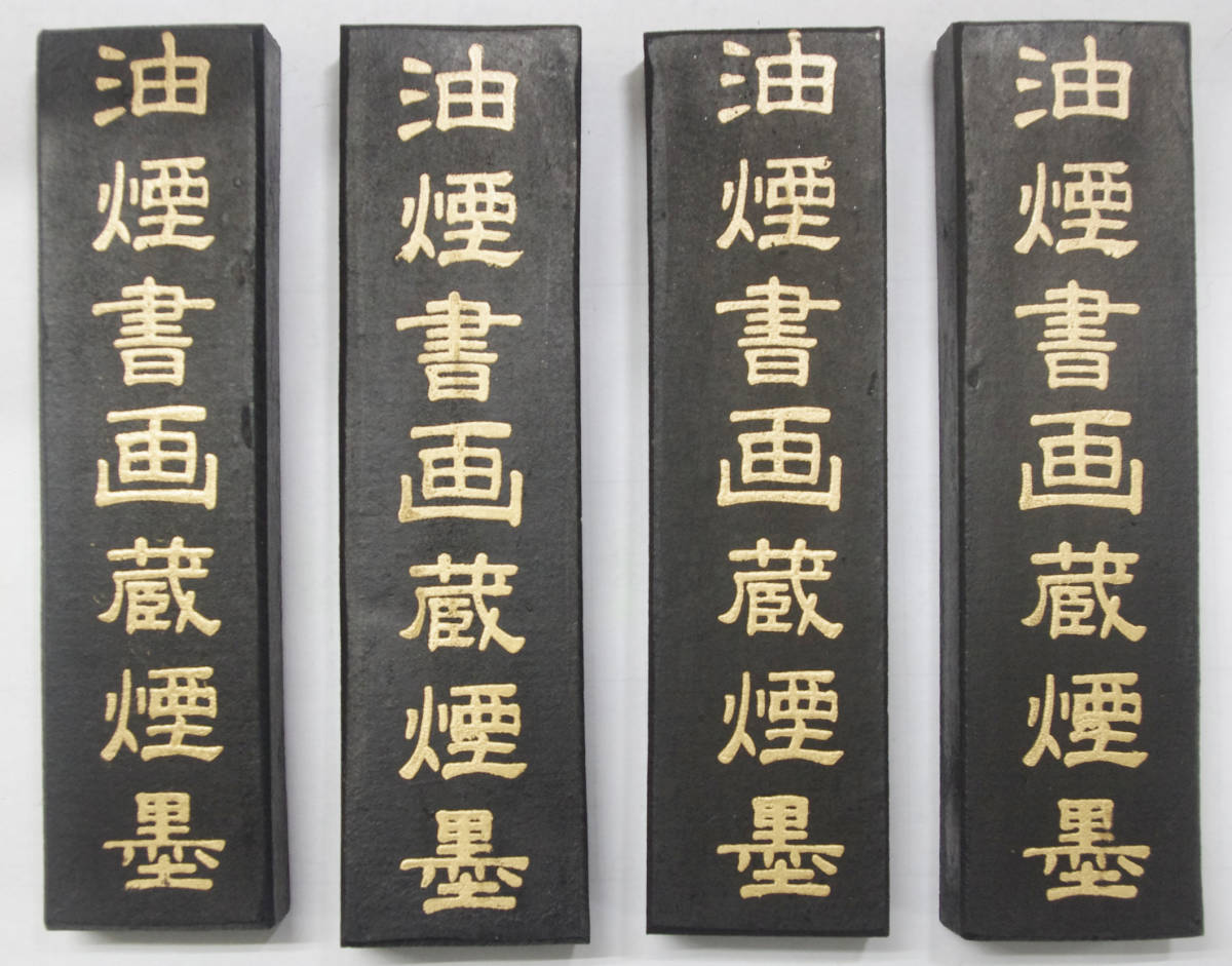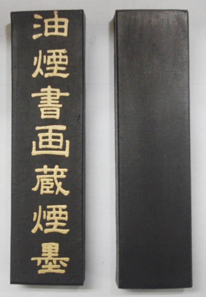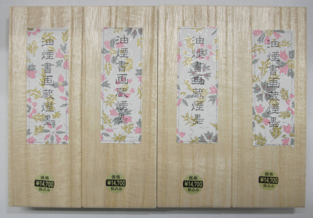 墨 固型墨 微粒子桐油煙「油煙書画蔵煙墨」5丁型を4丁セットで出品致します。 油煙の煤の中でも非常に粒子の細かい部分で製造されております。 非常に枯れており、滑らかな墨下りです。 濃墨では漢字用に中~淡墨ではやや茶系の水墨画用にも使用できる墨です。 定価14700円になります。 サイズ:129×35×15mm 重さ約75g 全て新品未使用 桐箱入りです。