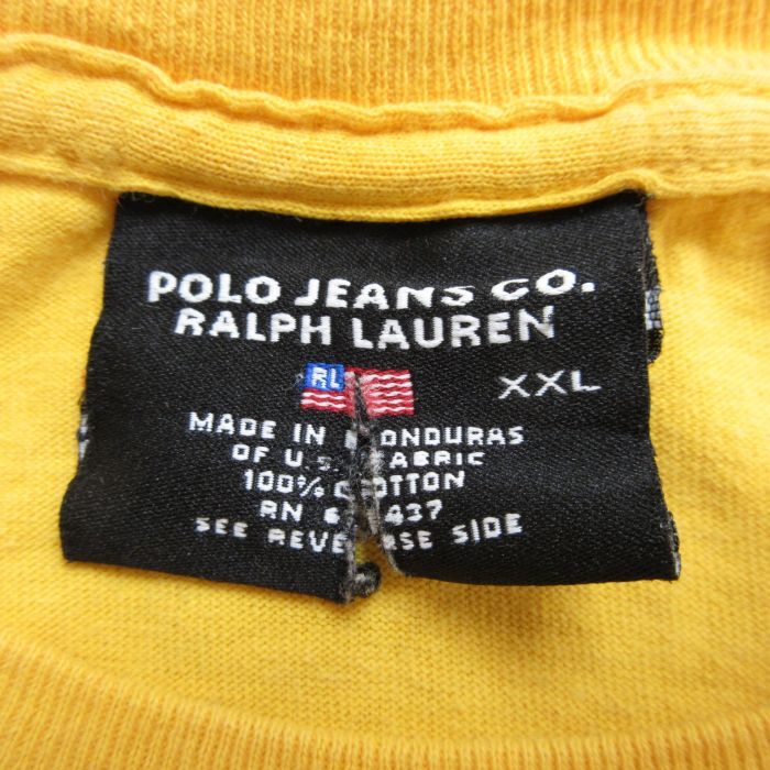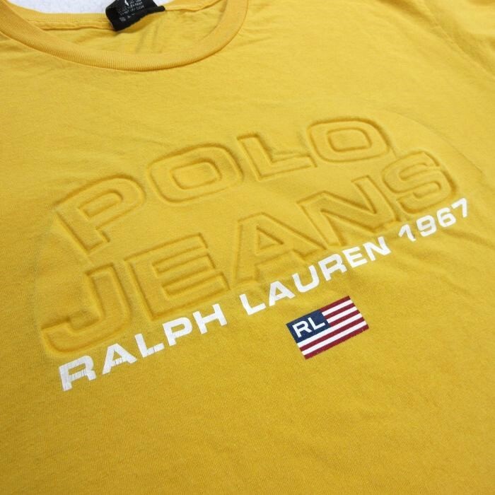 【商品名】 XL★古着 ラルフローレン ポロジーンズ 半袖 ブランド Tシャツ メンズ ビッグロゴ 大きいサイズ コットン クルーネック 黄【spe】