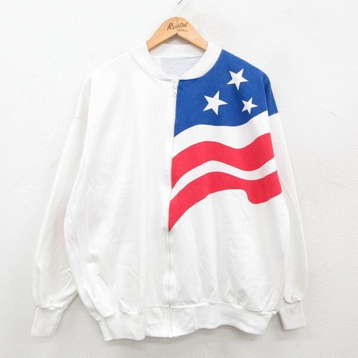 【商品名】 XL★古着 長袖 ジャケット メンズ 80年代 80s 星条旗 USA製 タロン 白他