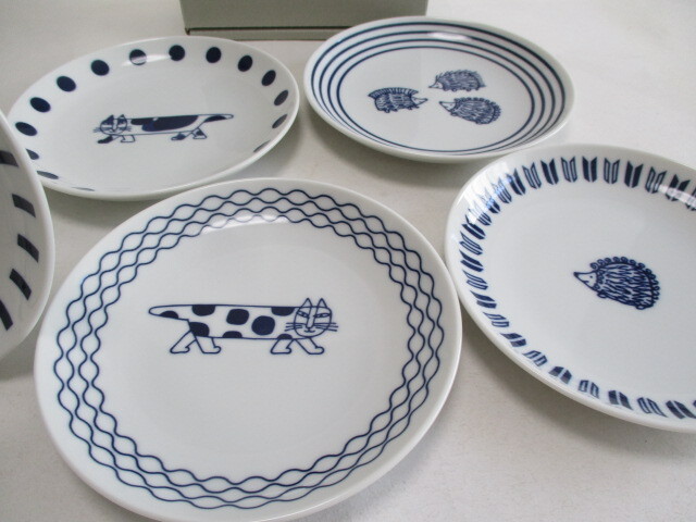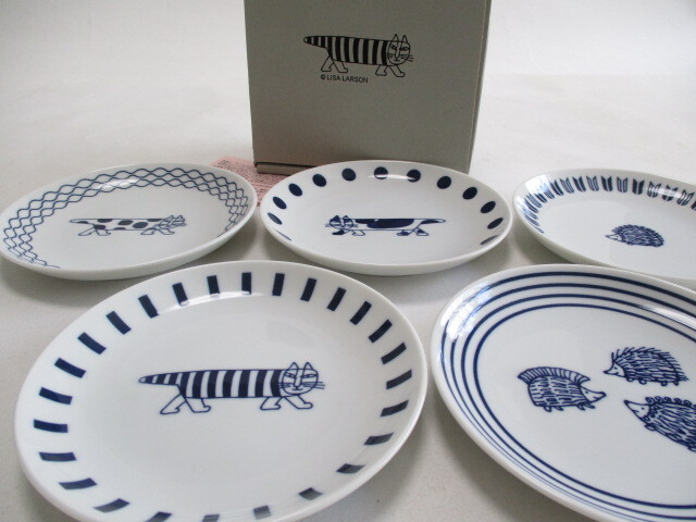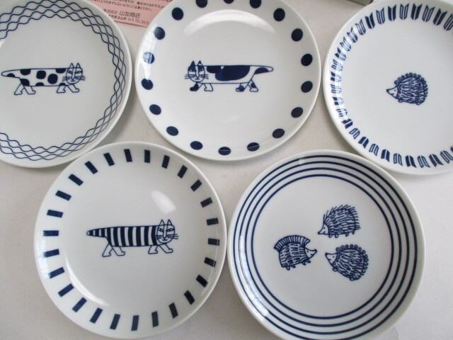 リサラーソン ファイブプレートセット ギフト可/ パン皿 14cm 5柄 5枚 マイキー ハリネズミ ネコ 陶器 食器