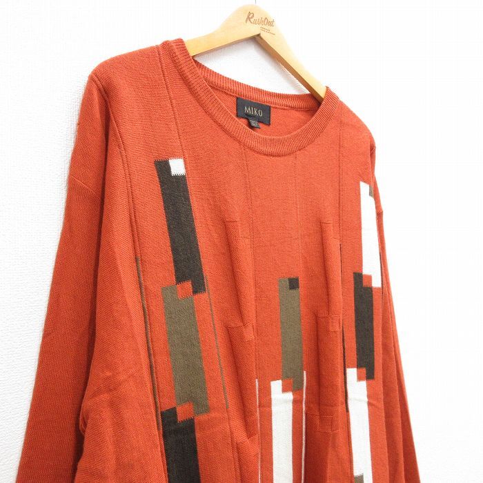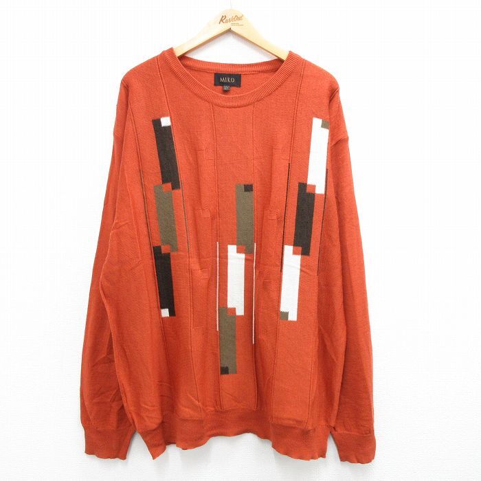 【商品名】 XL★古着 長袖 セーター メンズ 00年代 00s 大きいサイズ クルーネック オレンジ系