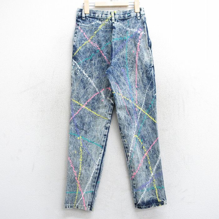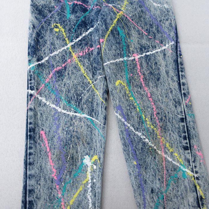 【商品名】 古着 ジーンズ キッズ ボーイズ 子供服 80年代 80s テーパード コットン USA製 タロン 紺 デニム ペンキ加工【spe】