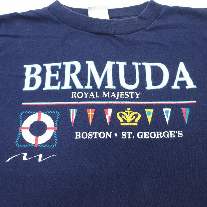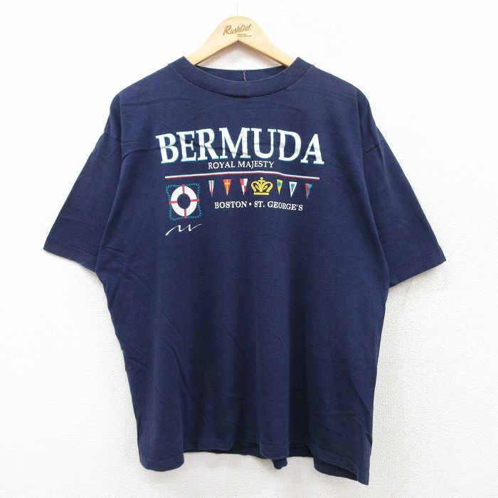 【商品名】 XL★古着 半袖 ビンテージ Tシャツ メンズ 90年代 90s バミューダ 大きいサイズ コットン クルーネック USA製 紺
