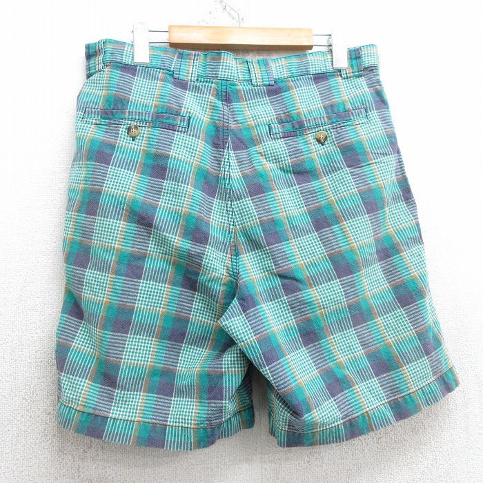 【商品名】 W34★古着 セントジョンズベイ ショート パンツ ショーツ メンズ 90年代 90s 緑他 チェック【spe】