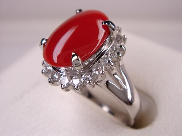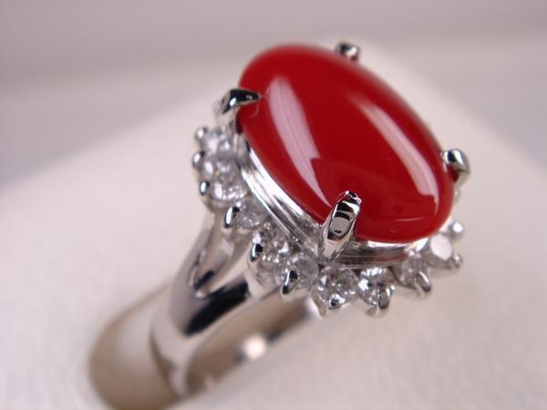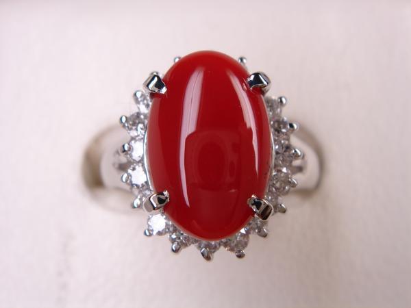 【コメント】 高品質血赤サンゴをダイヤで飾った