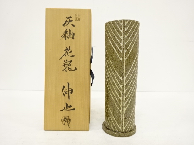 加藤伸也造 灰釉 花瓶 (IAB1DHP-022)