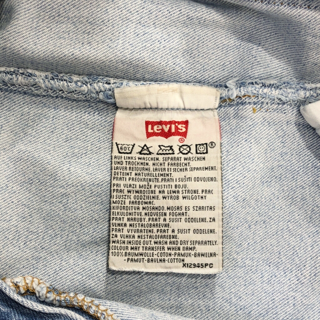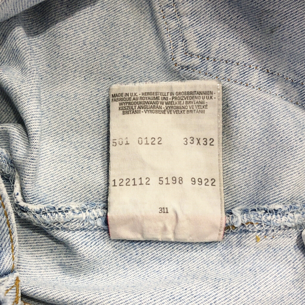 | 【商品管理番号】 V1935 【ブランド】 Levi's/リーバイス 【サイズ】 W33 L32 【実寸サイズ】 ウエスト:約76cm 股上:約29cm 股下:約79cm わたり幅:約30cm 裾幅:約20cm 【主な素材】 表地 : コットン 【色】 ブルー 【仕様】 生産国 : イギリス製 90年代 ユーロ 501 【状態】 汚れ:ひざ キズ:裾 | |||