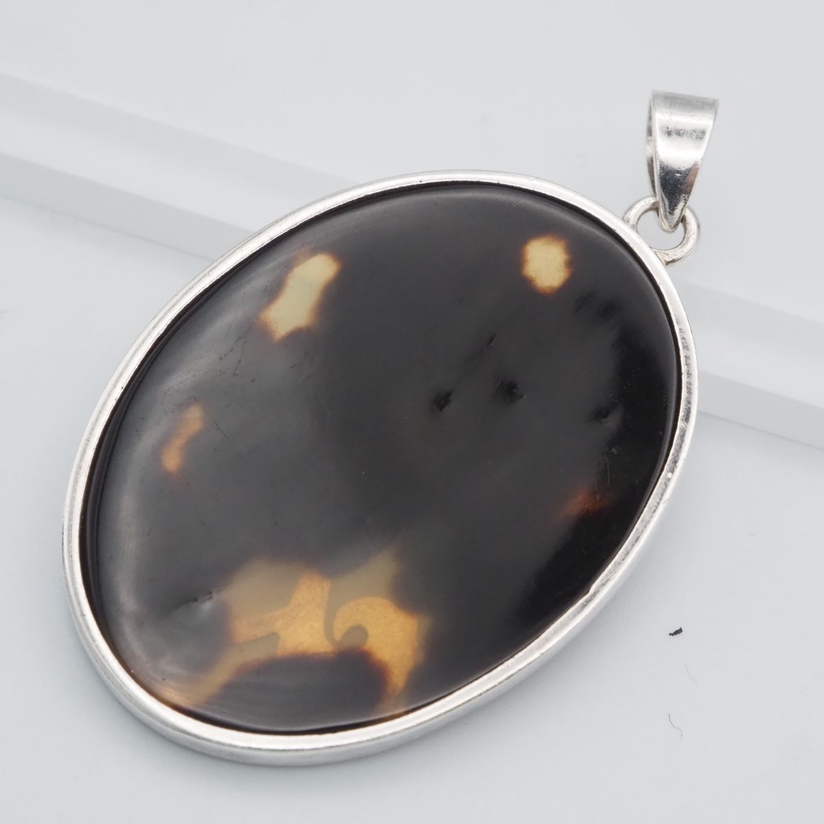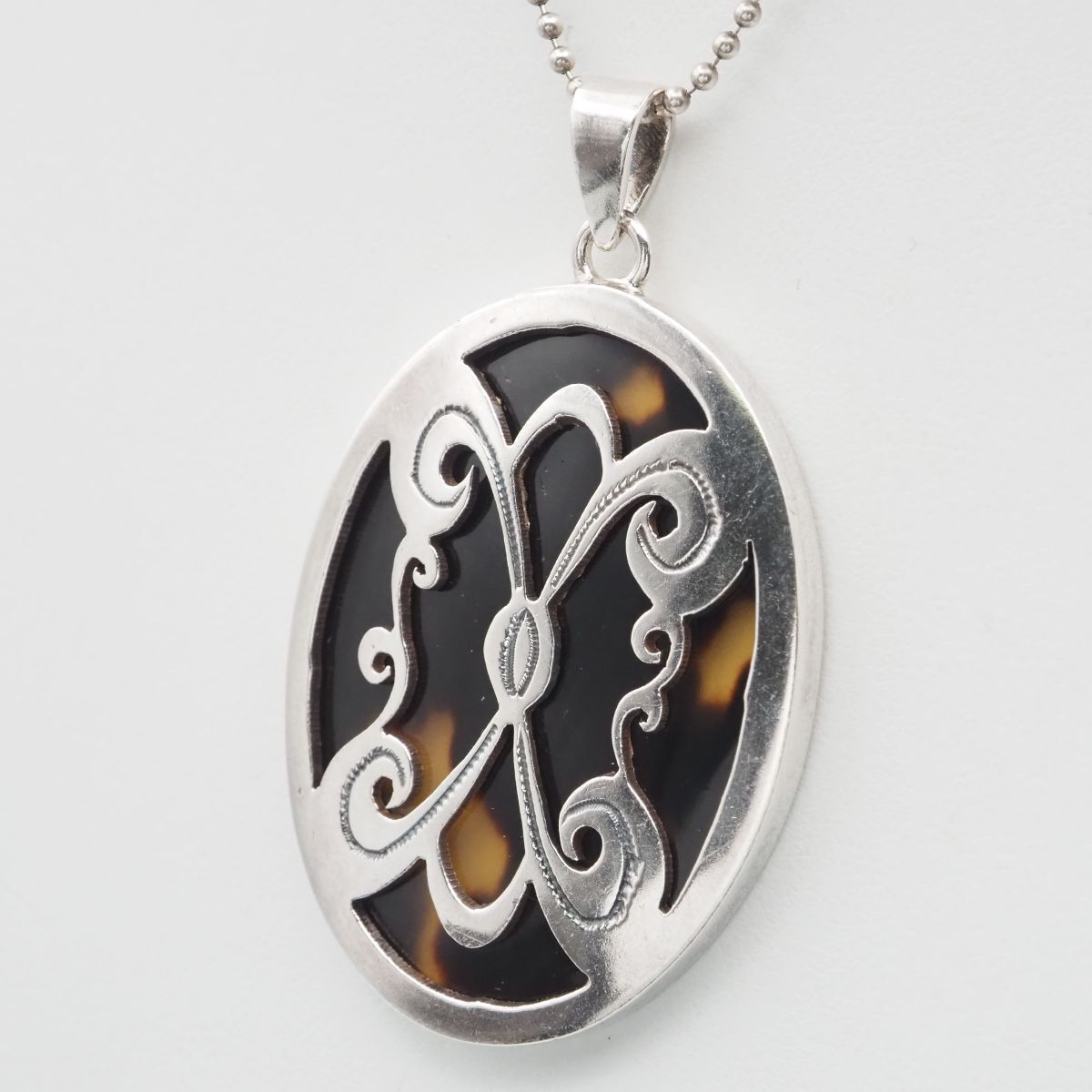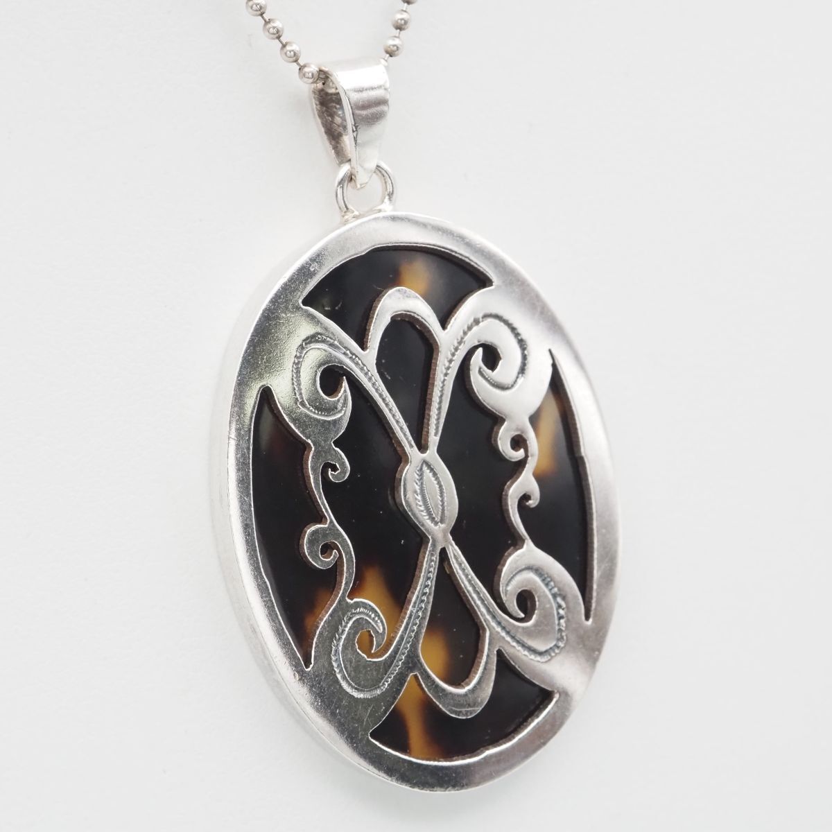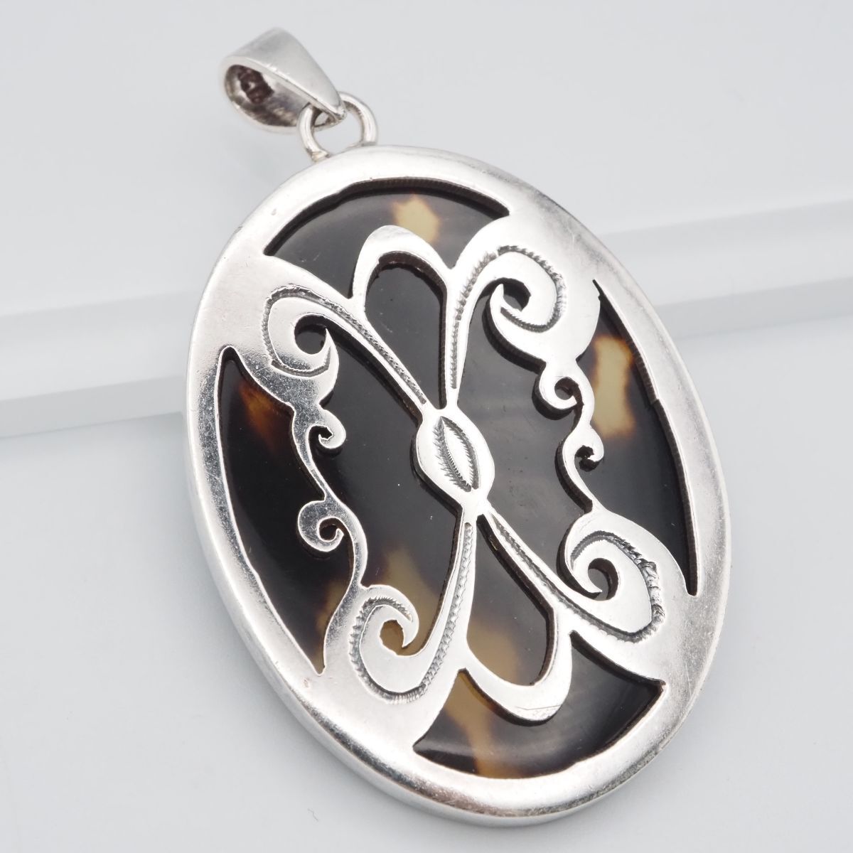 F124 鼈甲 べっ甲 925刻印 ペンダント トップ シルバー チャーム ヘッド ヴィンテージ