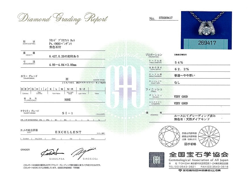 【商品ランク】 ※詳細はランク表をご確認下さい。 S 【ジャンル】 ネックレス/necklace 【ブランド】 - 【素材】 Pt900/Pt850/プラチナ 【重量】 6.3g 【サイズ】 ネックレスサイズ:約46cm ※スライドアジャスター付き トップデザインサイズ:約8.4×9.5mm ※トップ取り外し不可 【石目】 ダイヤモンド 中石:0.427ct カラー:H クラリティ:SI1 カット:EXCELLENT サイズ:4.80×4.84×3.00mm Fluo:NONE 脇石:総計0.20ct 【付属品】 全国宝石学協会発行の鑑定書 【商品状態】 新品仕上げ済み ※着用の際、左手側に引き輪が付いているデザインです。 【商品管理番号】 168796 |