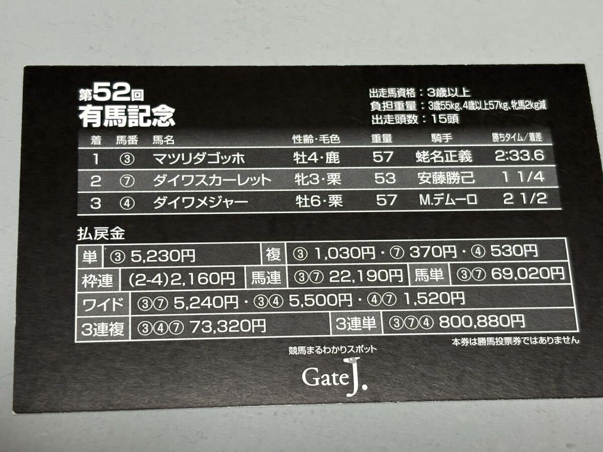 JRA G1カード マツリダゴッホ 有馬記念 GateJ.発行 新品非売品のものです。