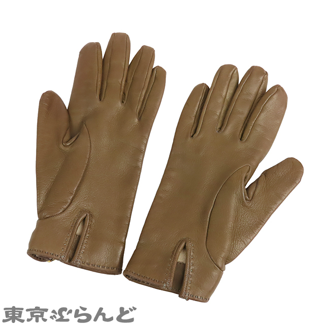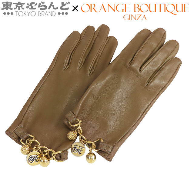 101798696 エルメス HERMES グローブ カーキ ラムスキン チャーム付 6 1/2 手袋 レディース