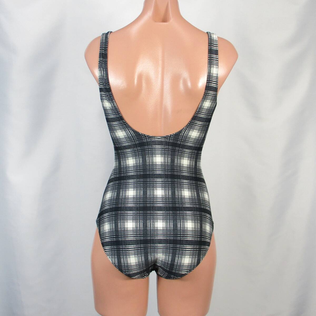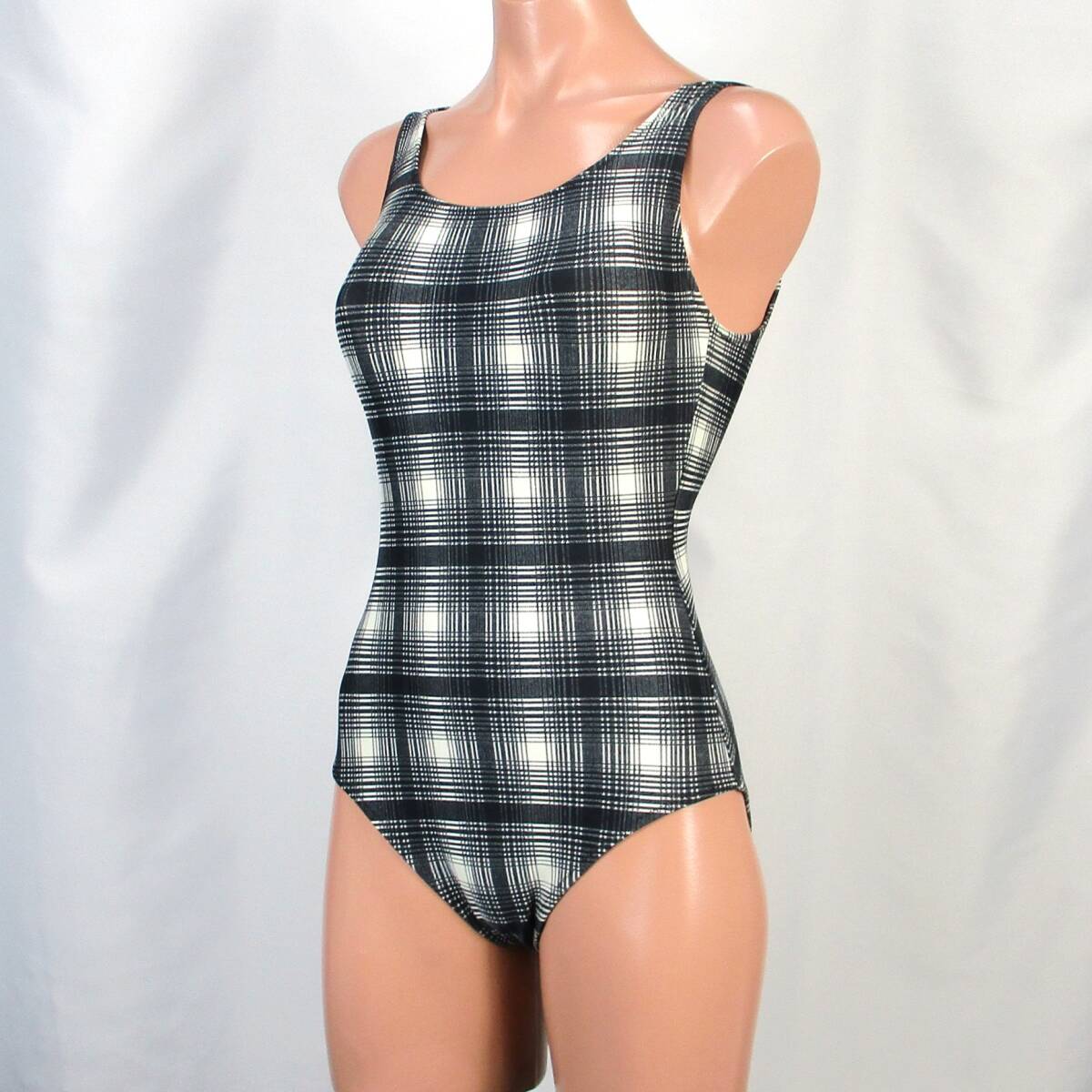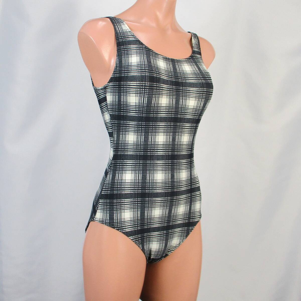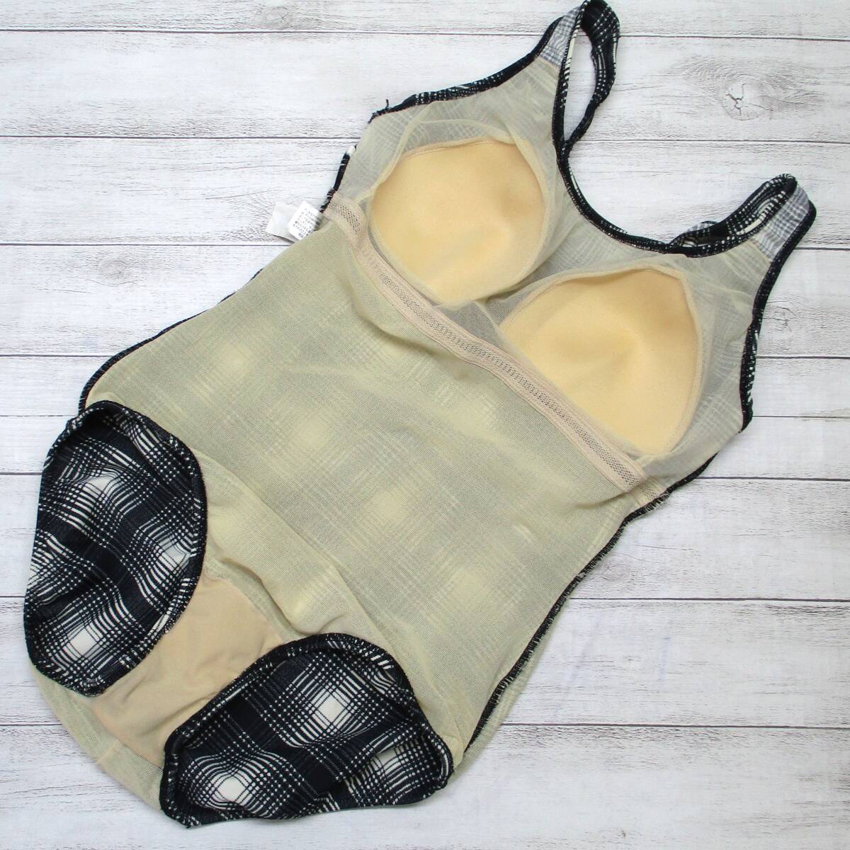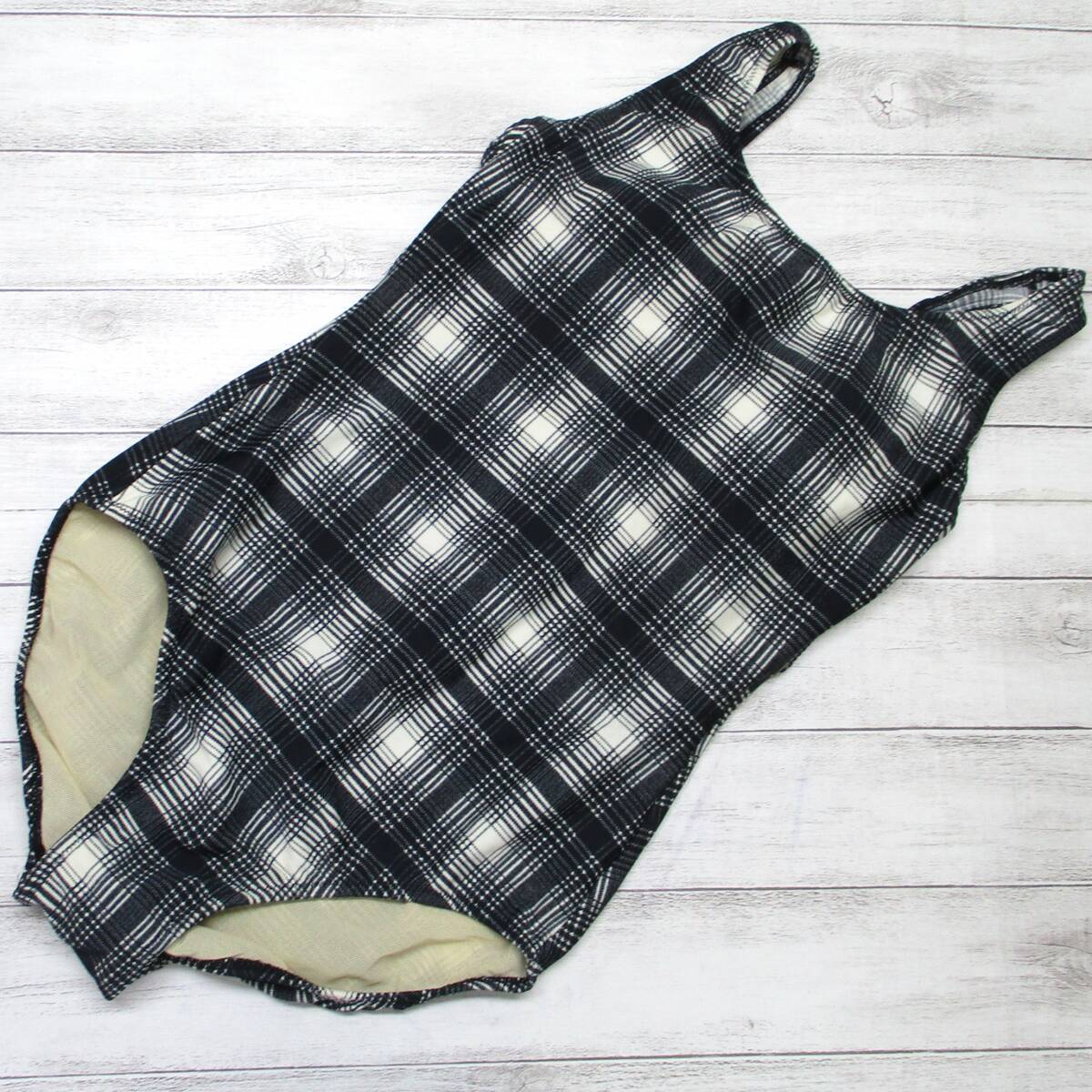 E8866★モノトーン チェック柄 水着 ワンピース レディース 11L ツルスベ おしゃれ 黒白 ブラック 水泳 スイミング プール ビーチ 海