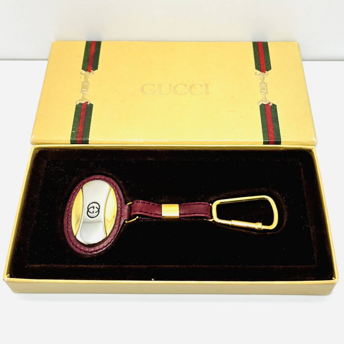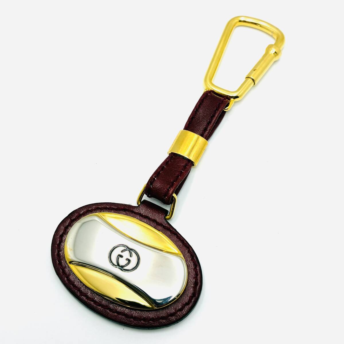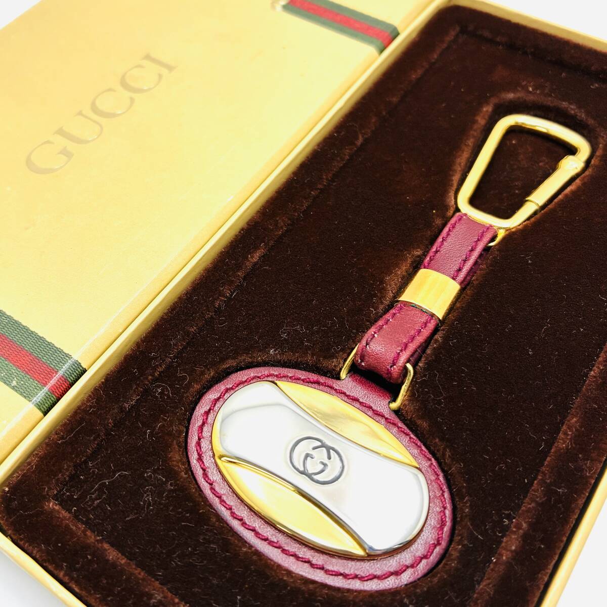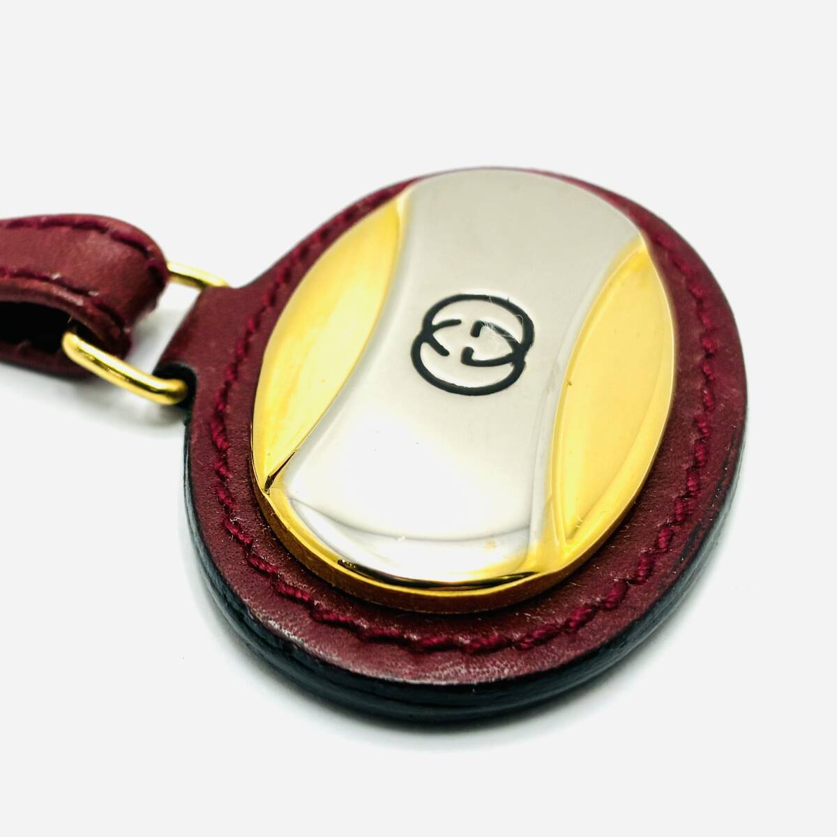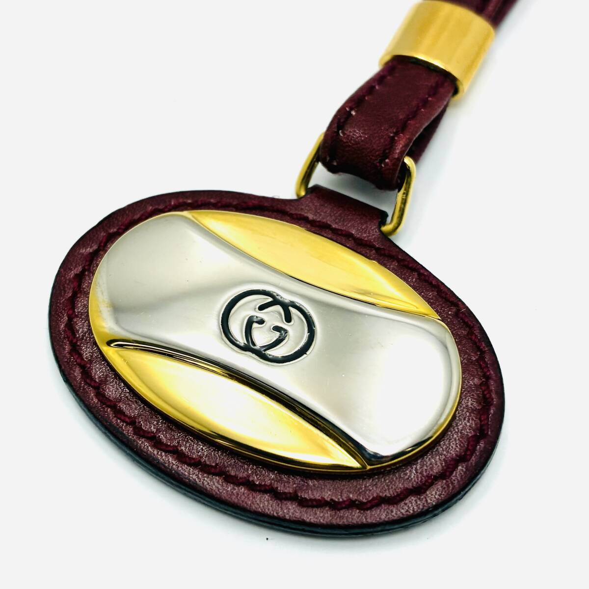 美品 GUCCI グッチ オールドグッチ キーホルダー エンジ系 ヴィンテージ インターロッキング 男女兼用 レザー メンズ レディース
