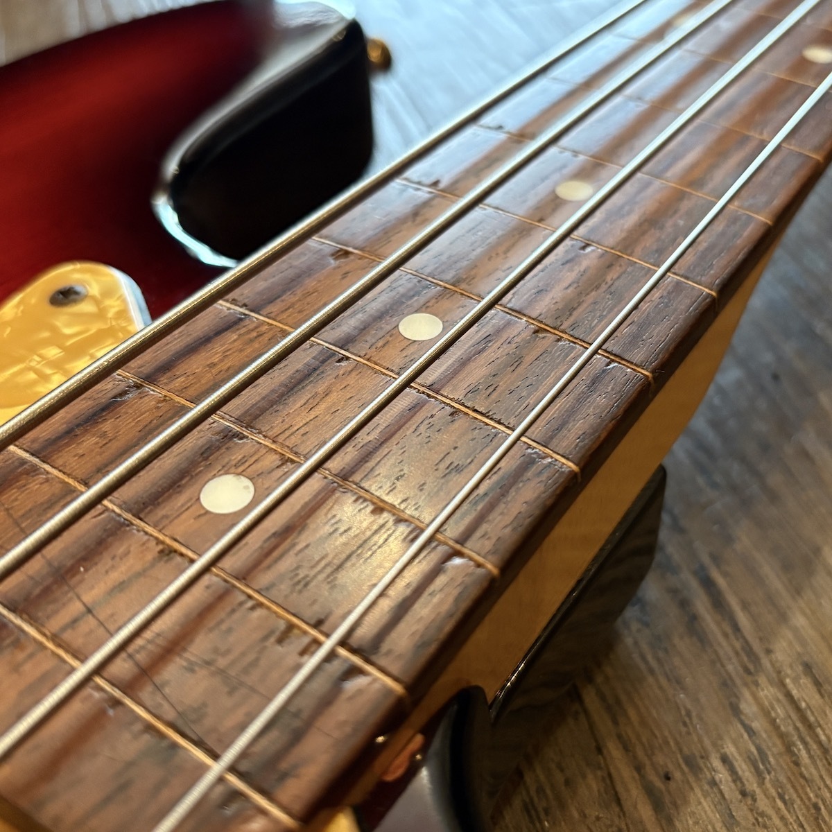 クロサワ楽器オリジナルブランドG.I.Gのジャズベースにフレットレス加工が施されています。