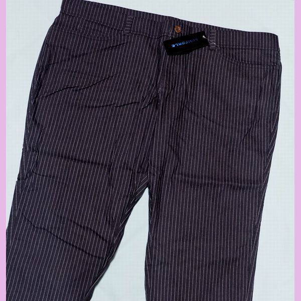 Last LUMFORLE 5L 股下68 ウルトラストレッチ 裏起毛 ラク伸び美脚パンツ 黒ストライプ 大きいサイズ