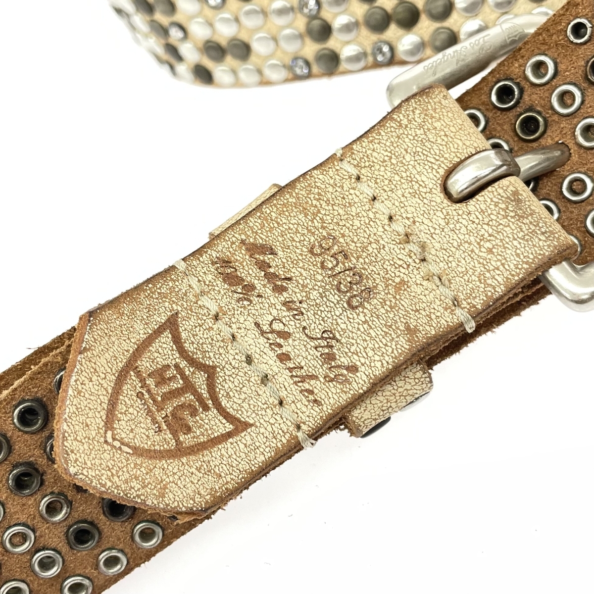 スレヨレ 【ベルト】若干使用感有り 擦れ、スタッズ取れ有り- 【バックル】くすみ有り ※スレ傷や汚れがある場合はその一部分のみ撮影を行っております。画像に写っていない箇所にも同じようなスレ傷や汚れがある場合がございます。 |