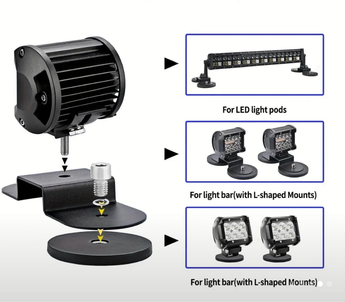 【ライト以外の設置固定も】 ライト以外にも、ソーラーパネル、スピーカー、防犯カメラ、看板、LED投光器、街灯、産業用工具、工場設備などの設置、固定用のマウントブラケットとしてもお役立ていただけます。