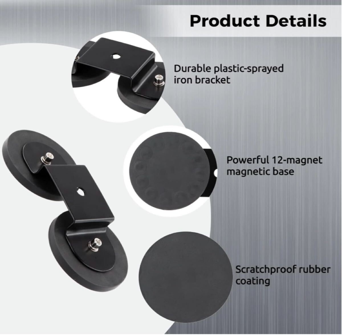 【超強力な12個の内部マグネット】各磁気吸盤ベースは12個の磁石で設計されており、強力な磁力が特徴です。 ● 車の平面にしっかり装着でき、 緊急ブレーキやでこぼこ路走行時でも振れ落ちず安定性を保つことができます。