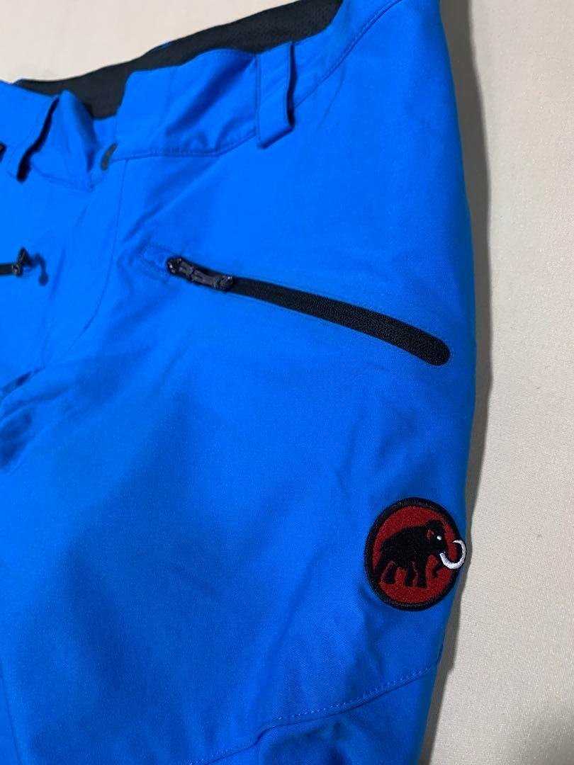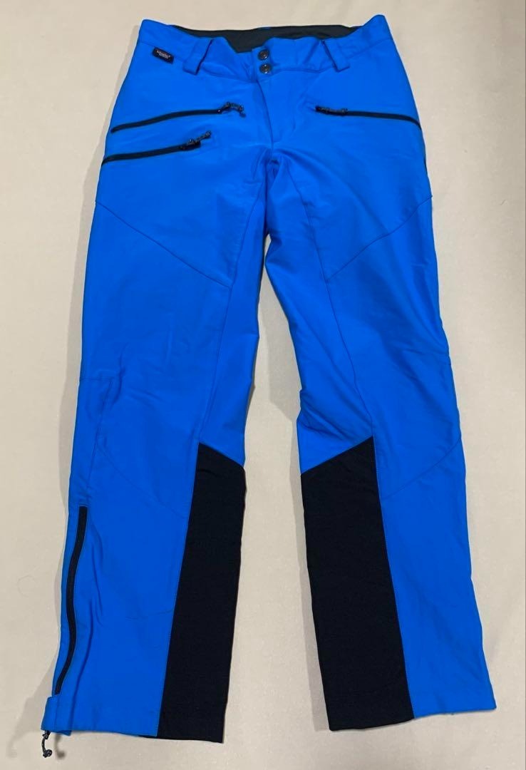 マムート アルパインパンツ Asia XS Shortサイズ ブルー シリアルNo.7217073 スタイルNo.1020-07581 schoeller製の高ストレッチ素材を使用しており、非常に動きやすいパンツです。 後ろと裾の擦れやすい部分は、非常に耐久性の高い素材に切り替わっており頑丈な作りになっております。 アイゼン使用も想定した素材す。 裾はファスナーで広くなる為スキーブーツ等にも対応します。 裾部に少し汚れと毛玉がございます。