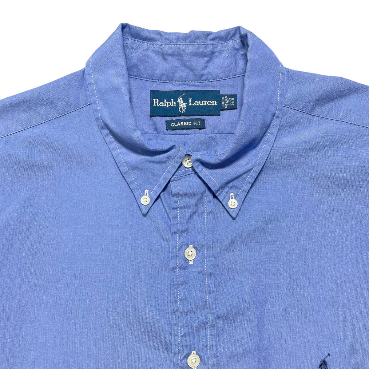 USA 古着 Ralph Lauren ラルフローレン コットン ボタンダウン 長袖シャツ カジュアルシャツ メンズXL相当 ブルー BG0908