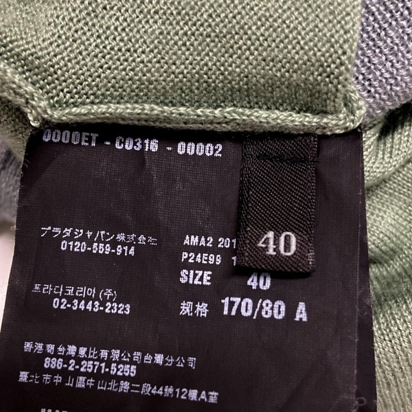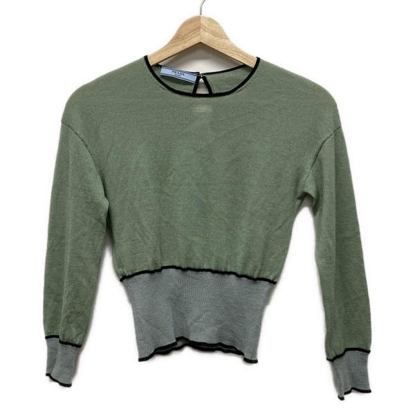 プラダ PRADA 長袖セーター/ニット サイズ40 M - グリーン×グレー×黒 レディース クルーネック トップス