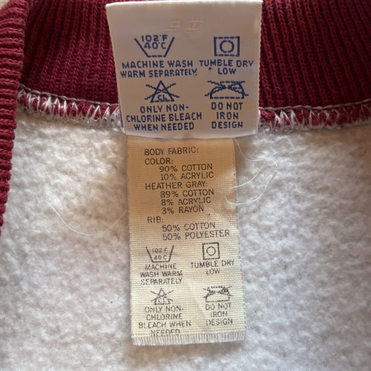 リブ周りにやや赤い色移りが見られます。古着特有のスレや薄汚れ等見られますが着用には問題ございません
