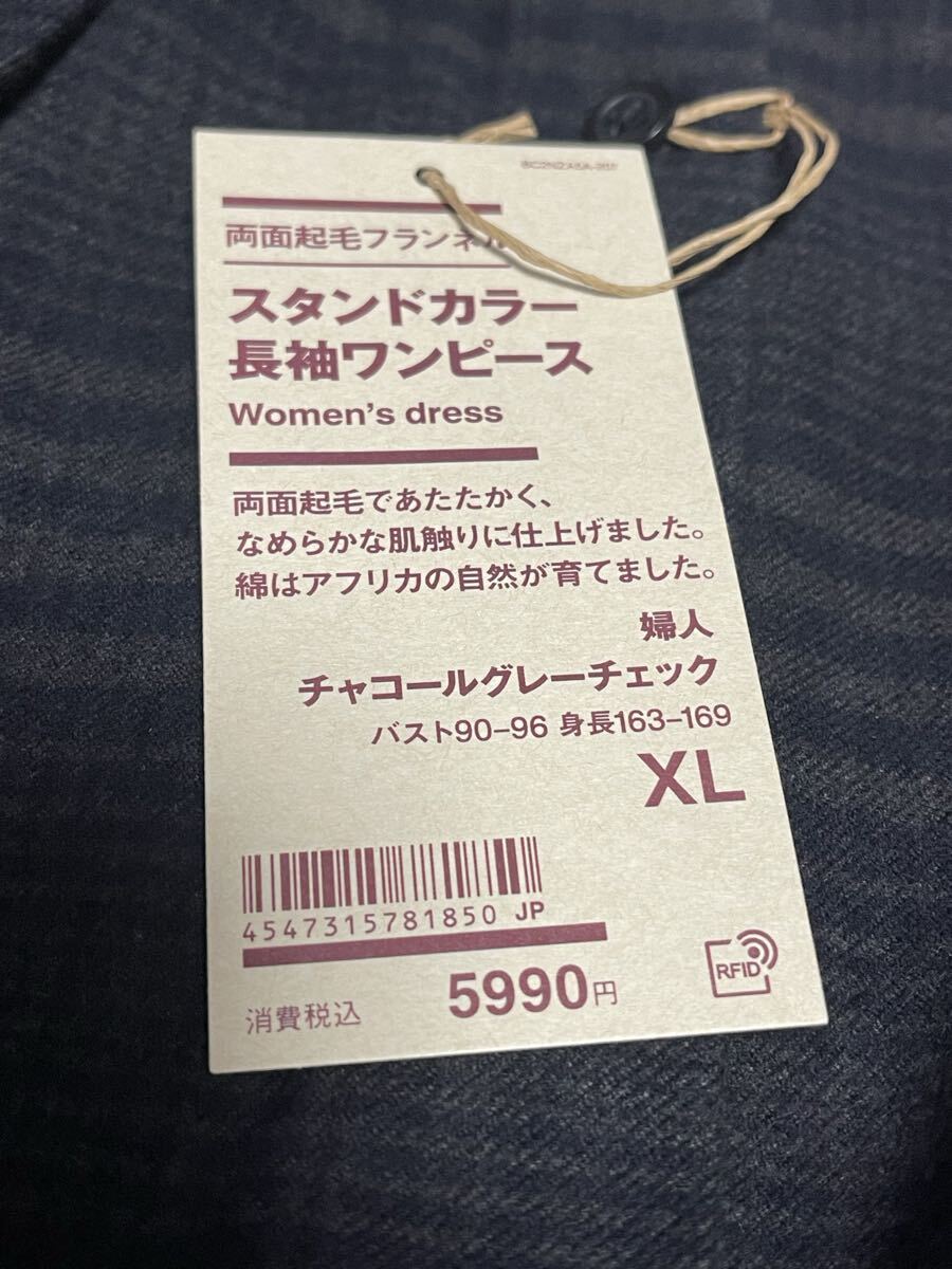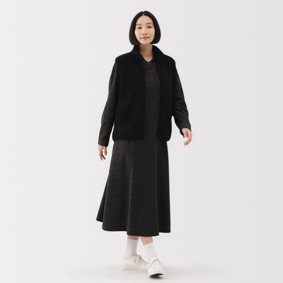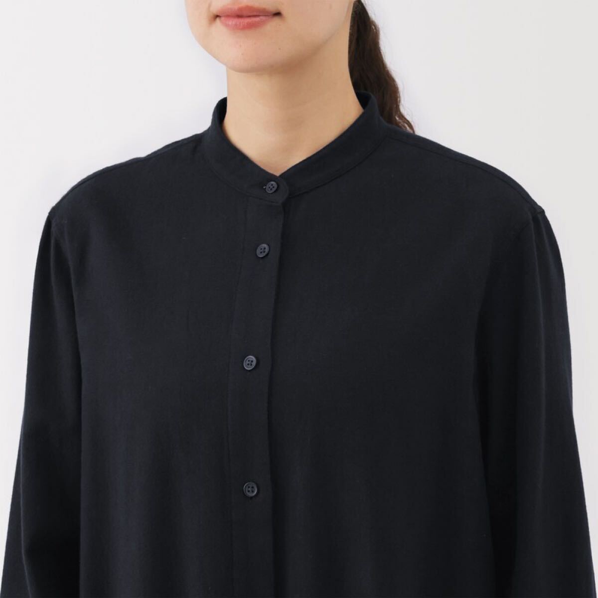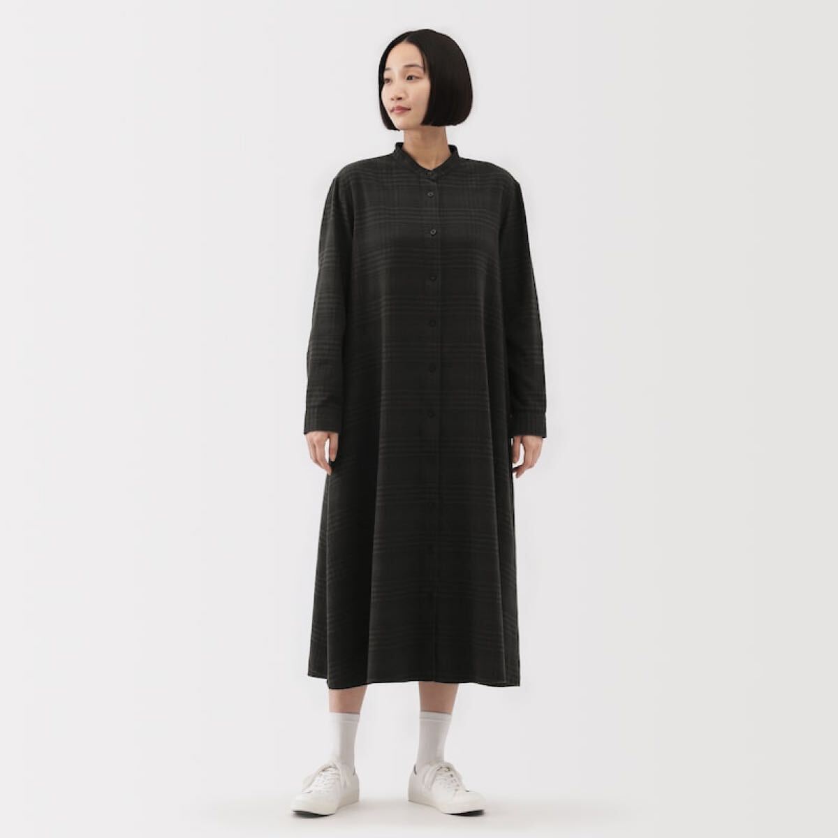 両面起毛フランネルスタンドカラー長袖ワンピース