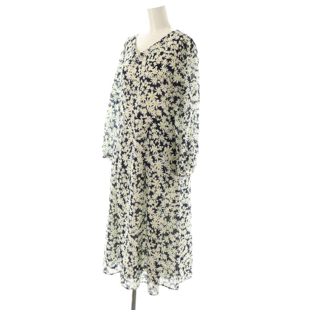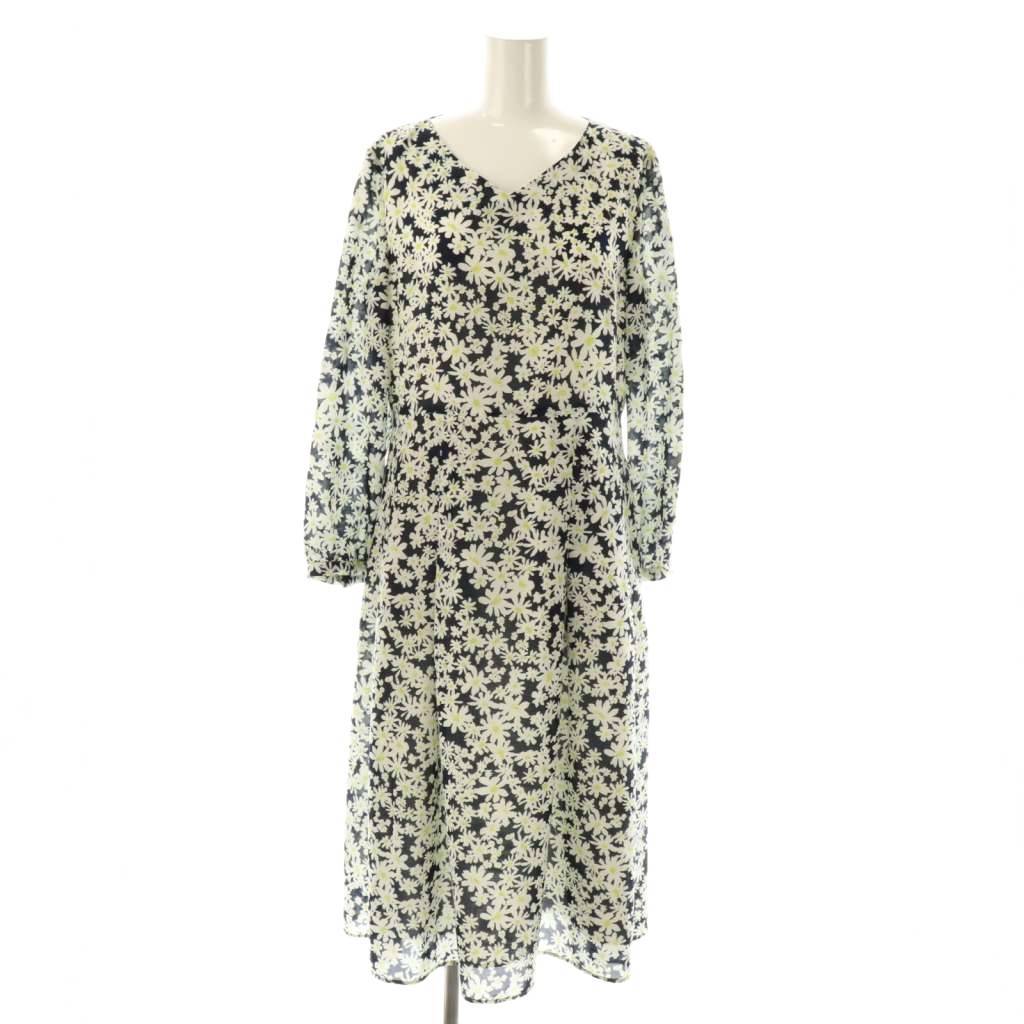 クミキョク 組曲 KUMIKYOKU 洗える マーガレットフラワー ワンピース ひざ丈 ミディ丈 3 ダークネイビー ホワイト /DF ■OS レディース