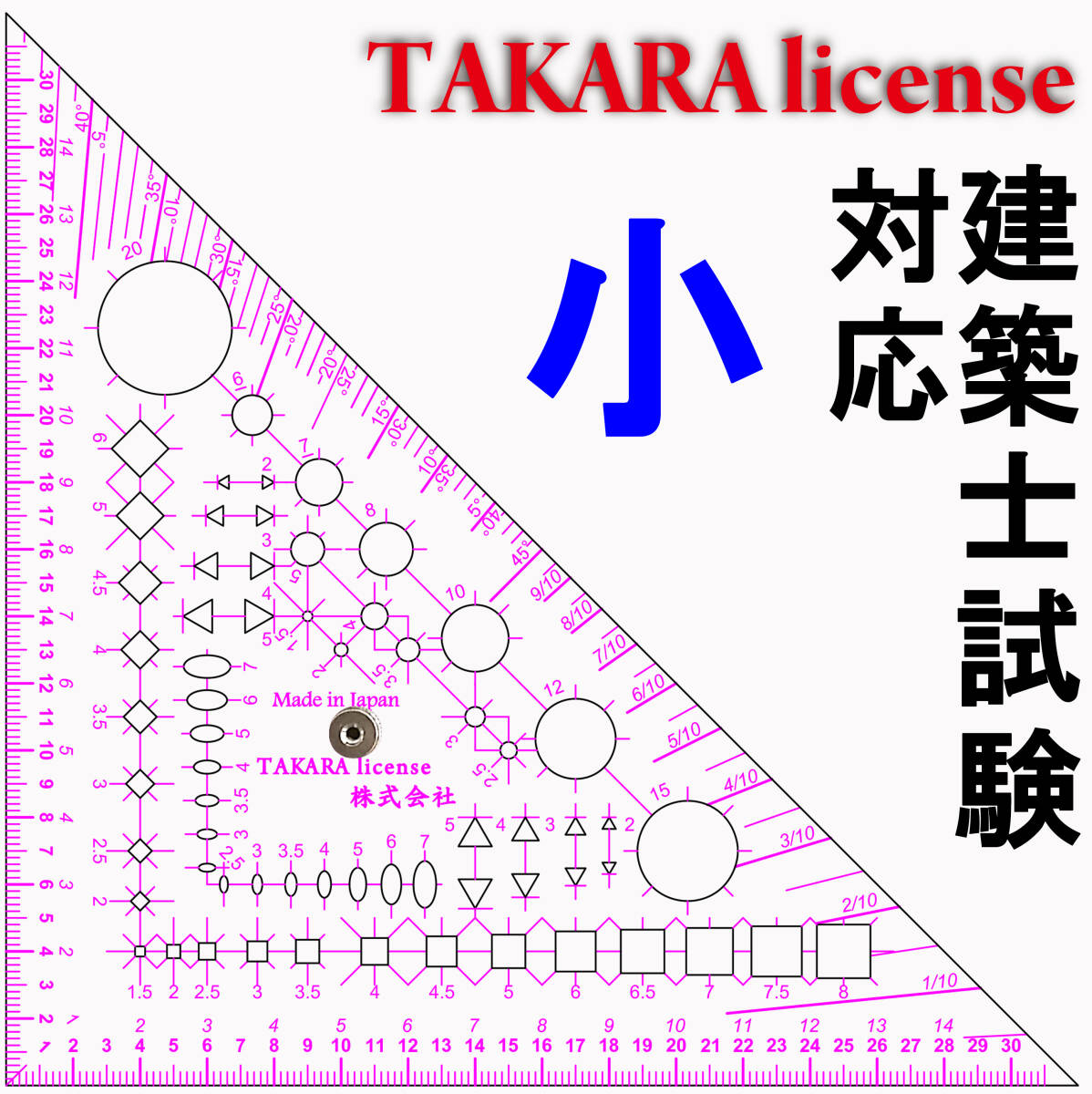 タカラ 製図マルチ定規 つまみ付 小 2mm厚 テンプレート 建築士 設計製図 勾配定規 スケール 縮尺定規 三角定規 2