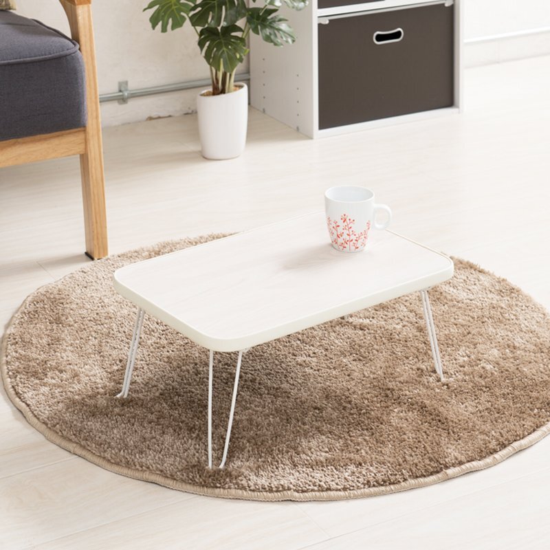 商品説明 | 天板フチカバーが付いており天板の角を守り、物が落ちにくい仕様です。 裏面も化粧張りを施してあり、収納時も見栄えが良い仕様です。 使用しないときには折りたたんで収納可能です。 |