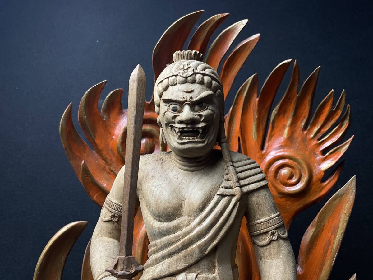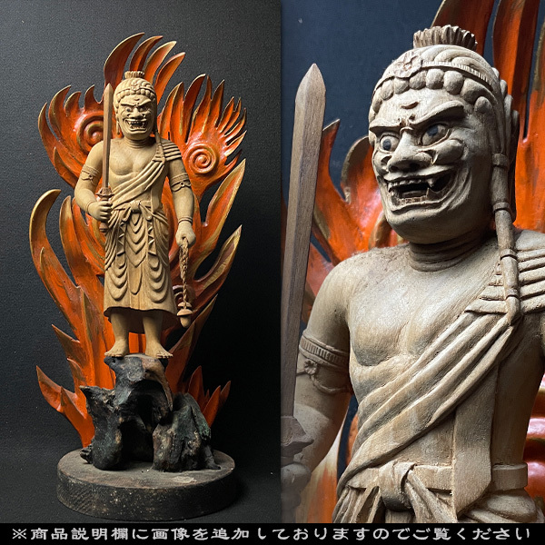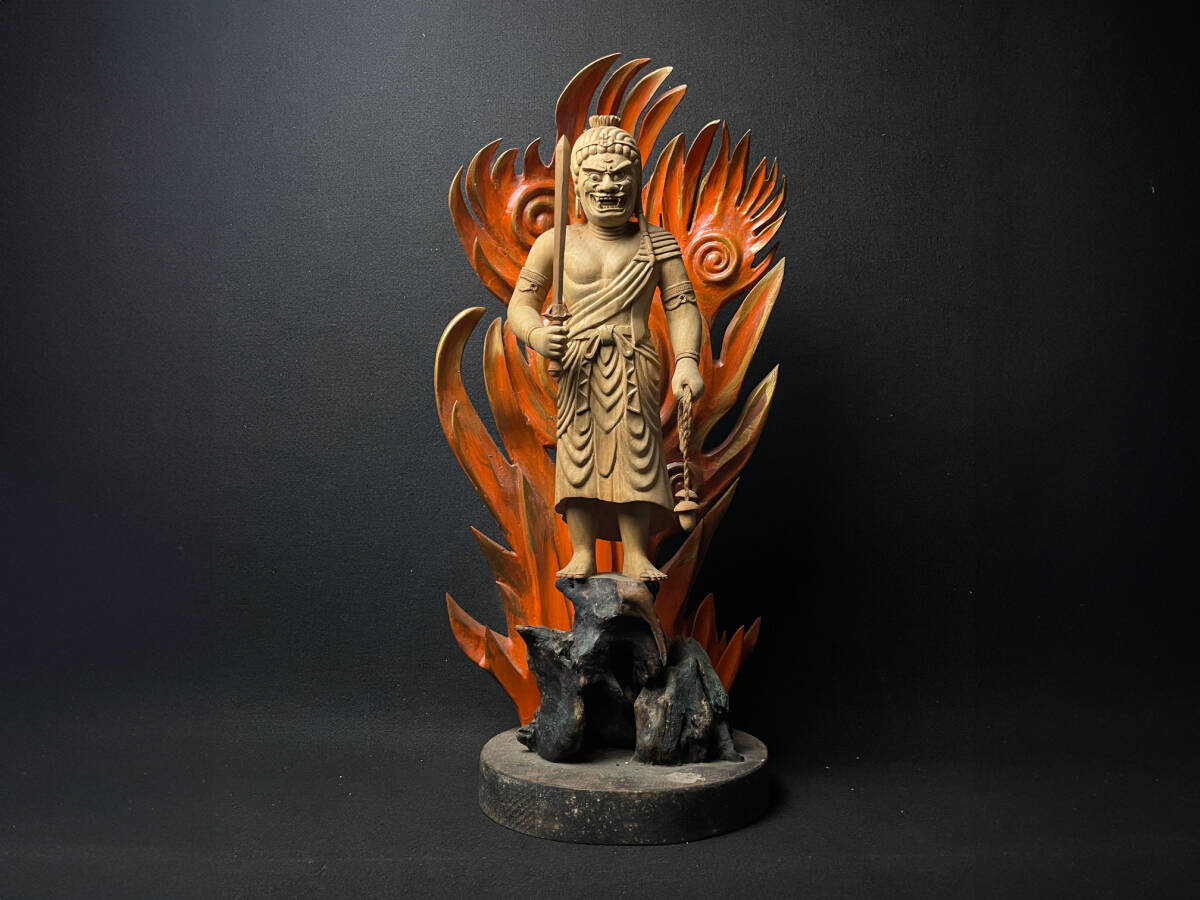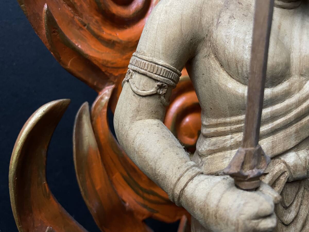 | 仏教美術 彩色木彫不動明王立像 細密彫刻 仏像 神社仏閣 時代 高さ約63cm |