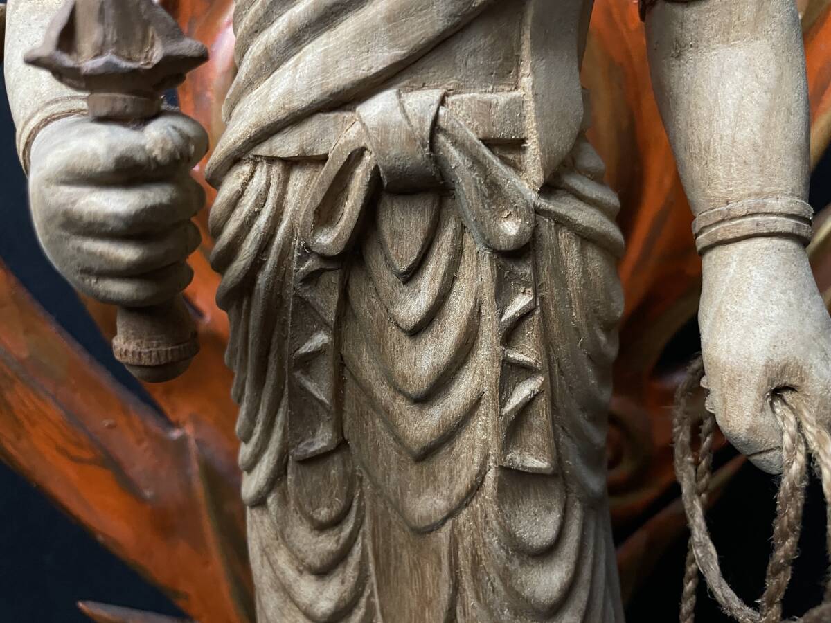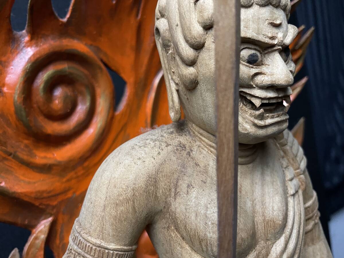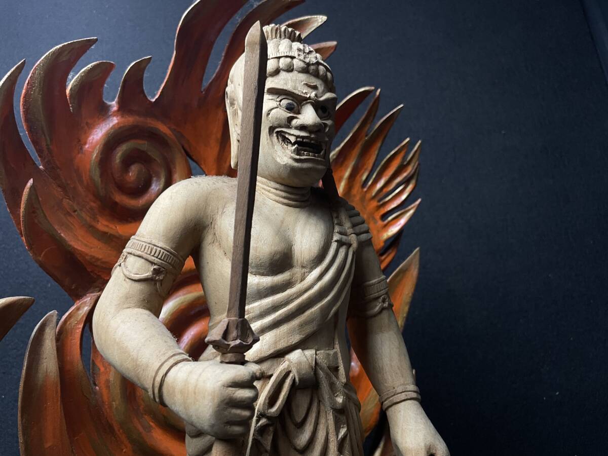| 仏教美術 彩色木彫不動明王立像 細密彫刻 仏像 神社仏閣 時代 高さ約63cm |