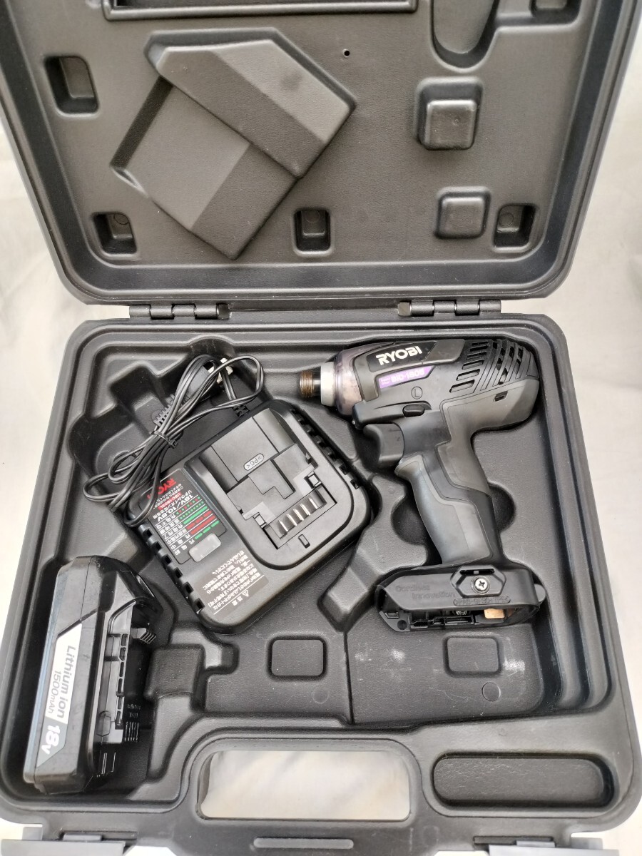 リョービの18V充電式インパクトドライバーBID-1805です、使用品ですが状態が良いのでまだまだご使用が出来るインパクトドライバーです。充電器UBC-1803Lと電池パックB-1815LAも美品で状態は良いのでまだまだご使用出来ます。ケースが付いています、動作は確認済みです、発送はゆうパック着払い80サイズで発送いたします。