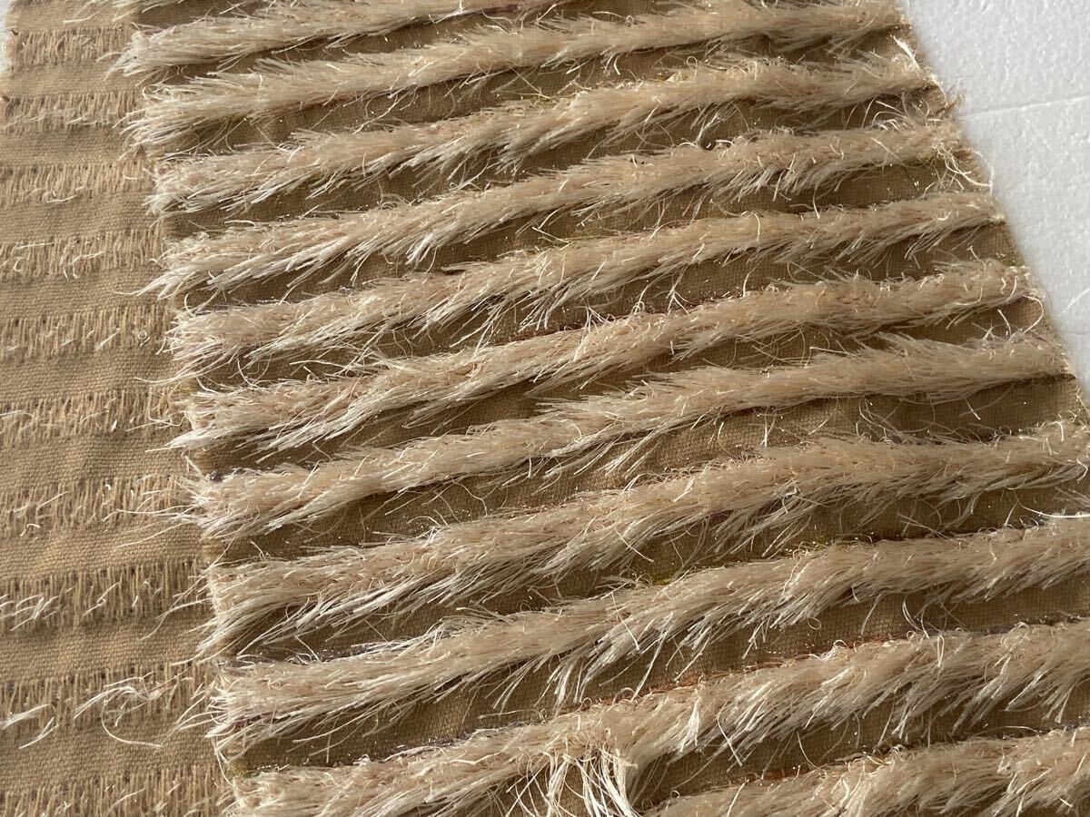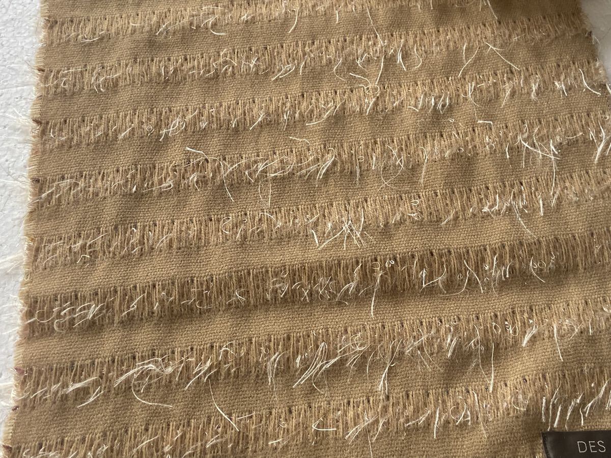 カラーはベージュ系で、素材は〈ポリエステル58%、アクリル36%、ポリアミド6%〉です。