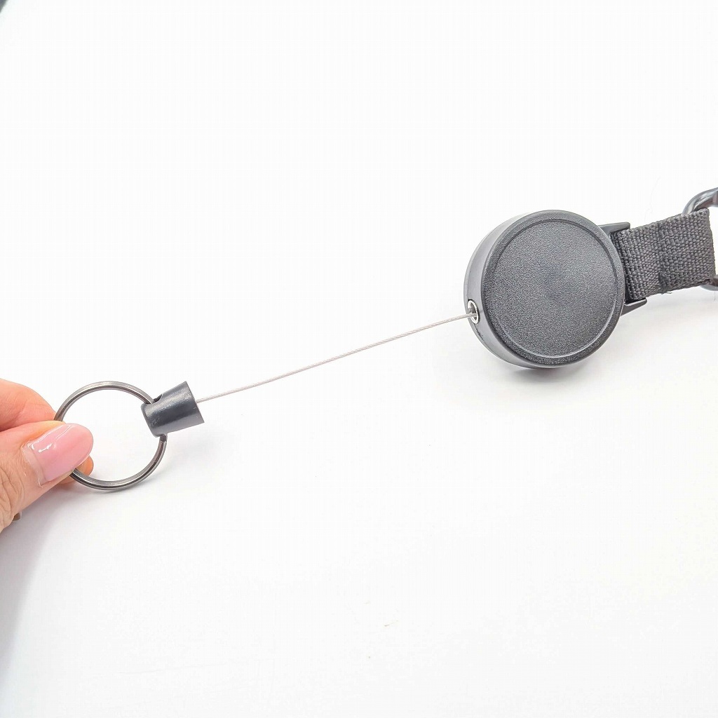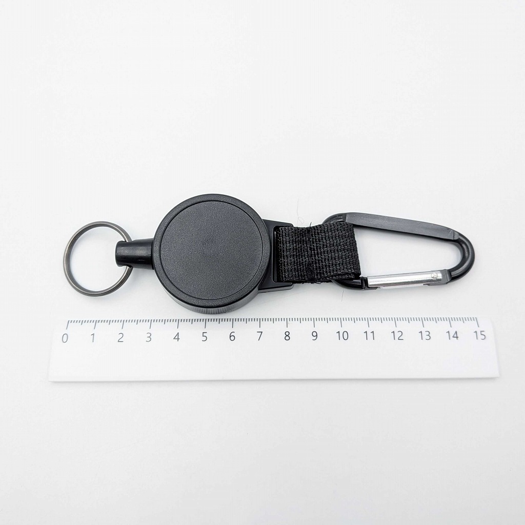 リールキーホルダー カラビナ付き ブラック 大 1個 ワイヤー 伸縮約70cm キーリング キーチェーン 落下防止 紛失防止 アウトドア ビーズクラブ