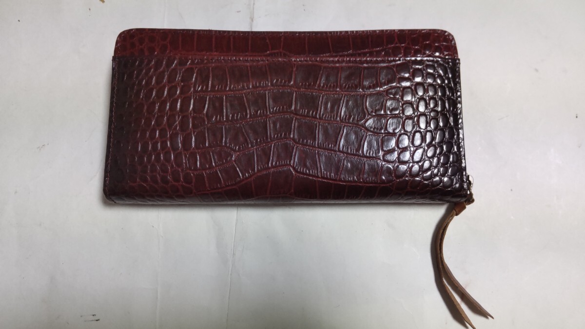 の財布です。高級感が溢れるクロコダイル型押し牛革を使用して、出し入れやすいラウンドファスナーを施して、収納力が抜群のアイテムです。