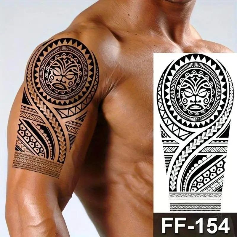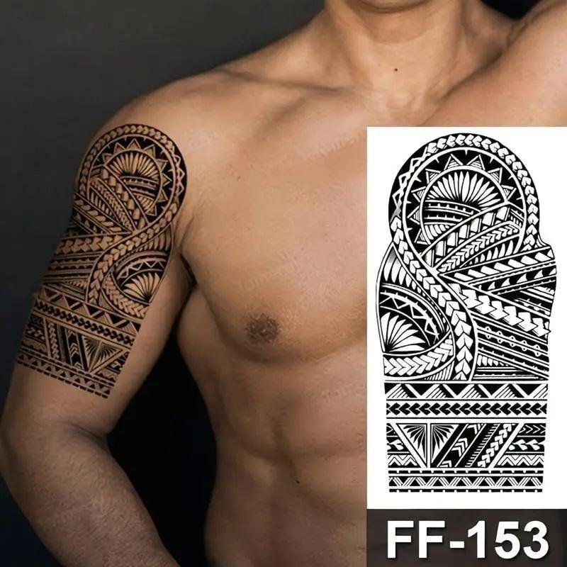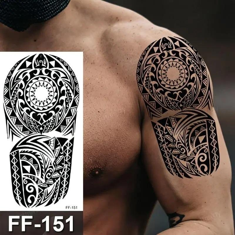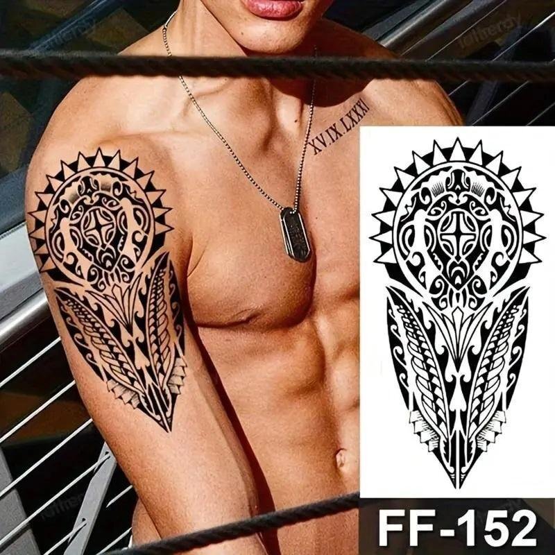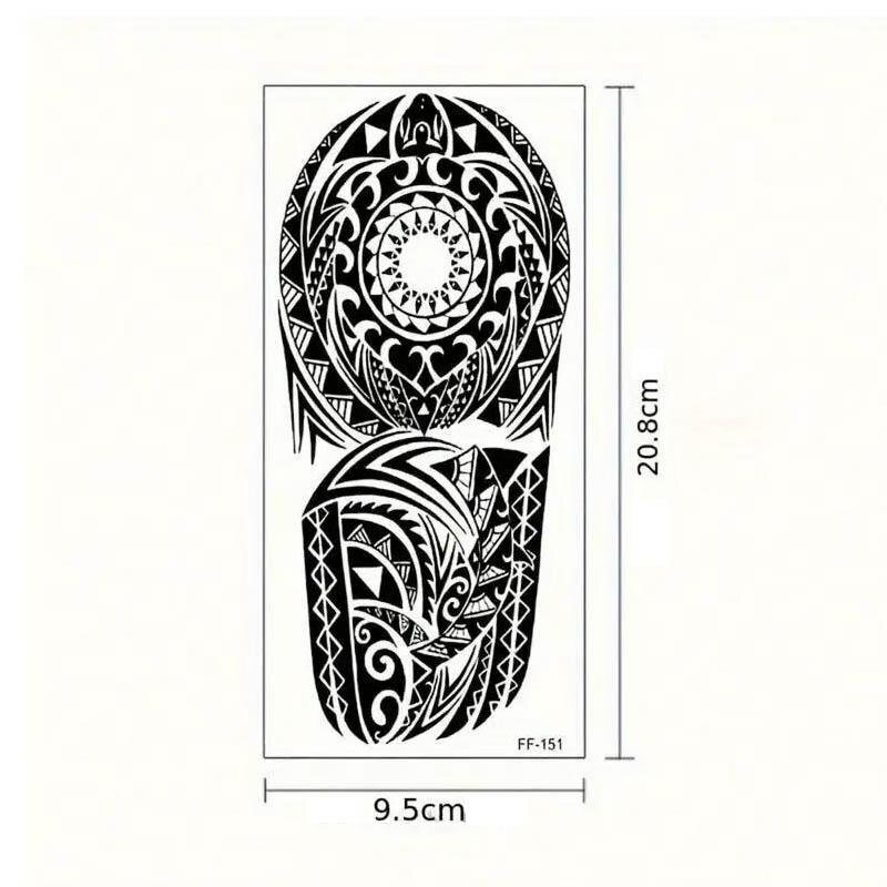 | 台紙サイズ 約 9.5cm×20.8cm 肘から手首ほどのサイズのタトゥーシールです。 ※敏感肌、目の近く、または接着剤にアレルギーがある場合は使用しないでください。 【使用方法】 ●透明フィルムを剥がし、スプレーまたは濡れタオルでステッカーをしっかりと濡らして下さい。 ●10秒間、肌に密着させ、ステッカーを剥がします。その後約2時間濡らさないで下さい。 ●約、6時間後に発色開始→約24~48時間程度で完全発色します。 ●約1~2週間持続します。 【貼る時のコツ】 シートそのままの大きさだと曲げ辛く密着しにくい為、余白部分を切ってから貼るのがコツです。 ※商品画像の色味は画面でみた場合と実際は多少の色差が生じる場合がございます。 ※海外製品のため入荷時点でしわや折れ目が付いている場合がございますが、ご使用には問題ございませんので予めご了承ください。