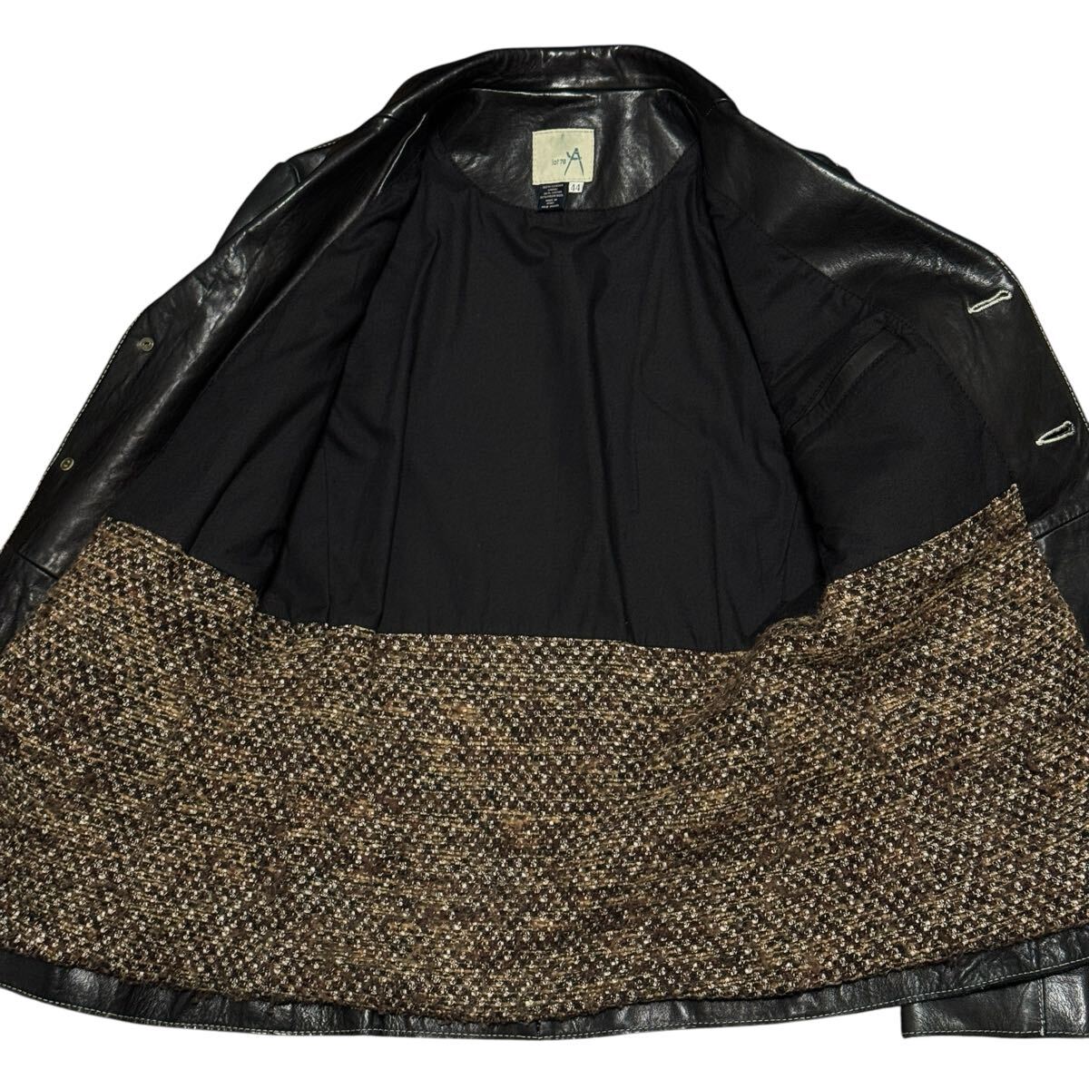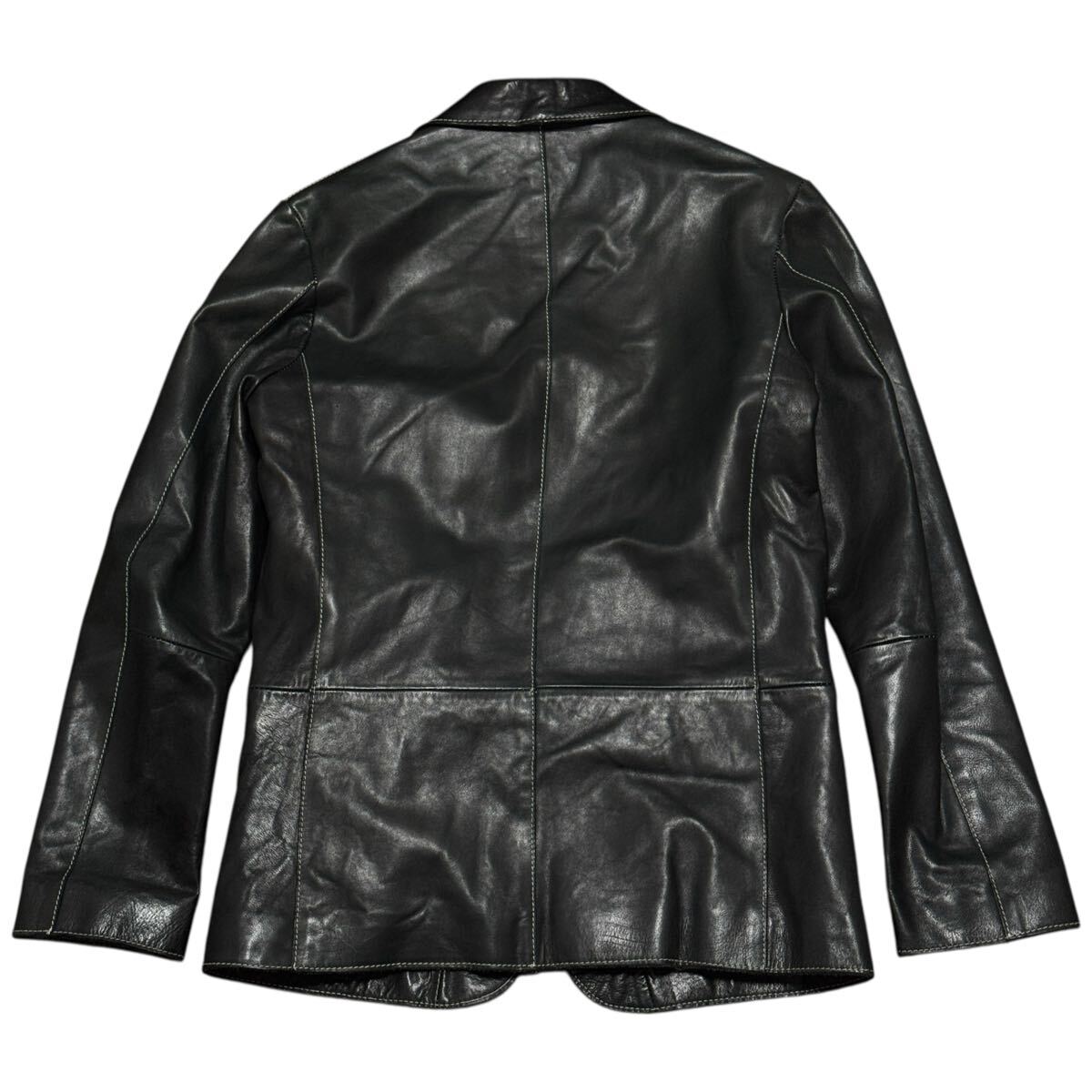 イタリア製ならではの上質なレザーを使用し、3つボタンのテーラードジャケット型で仕上げられた一着。裏地はコットンとヴァージンウールの混紡で快適な着心地を実現しています。