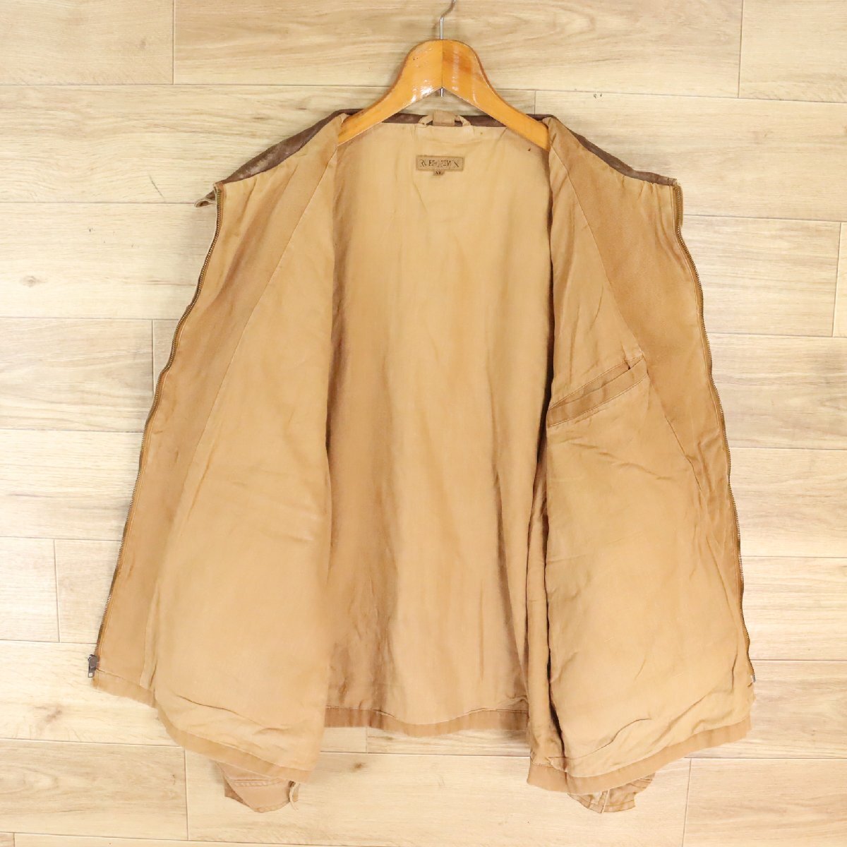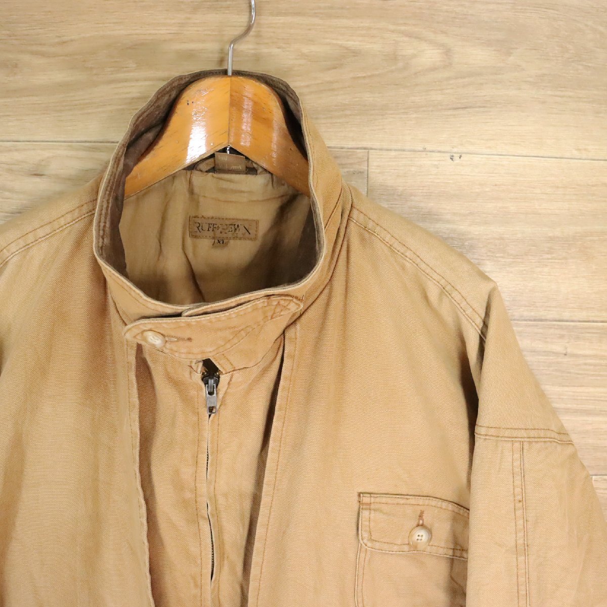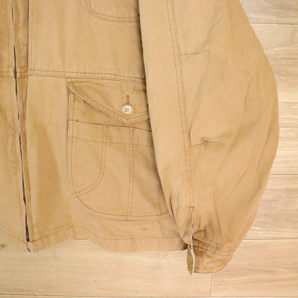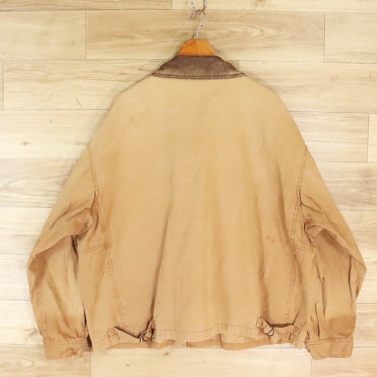 H2T/D8.11-2 アメリカ古着 ダック地 ハンティングジャケット 襟レザー ダックジャケット ブラウン XL