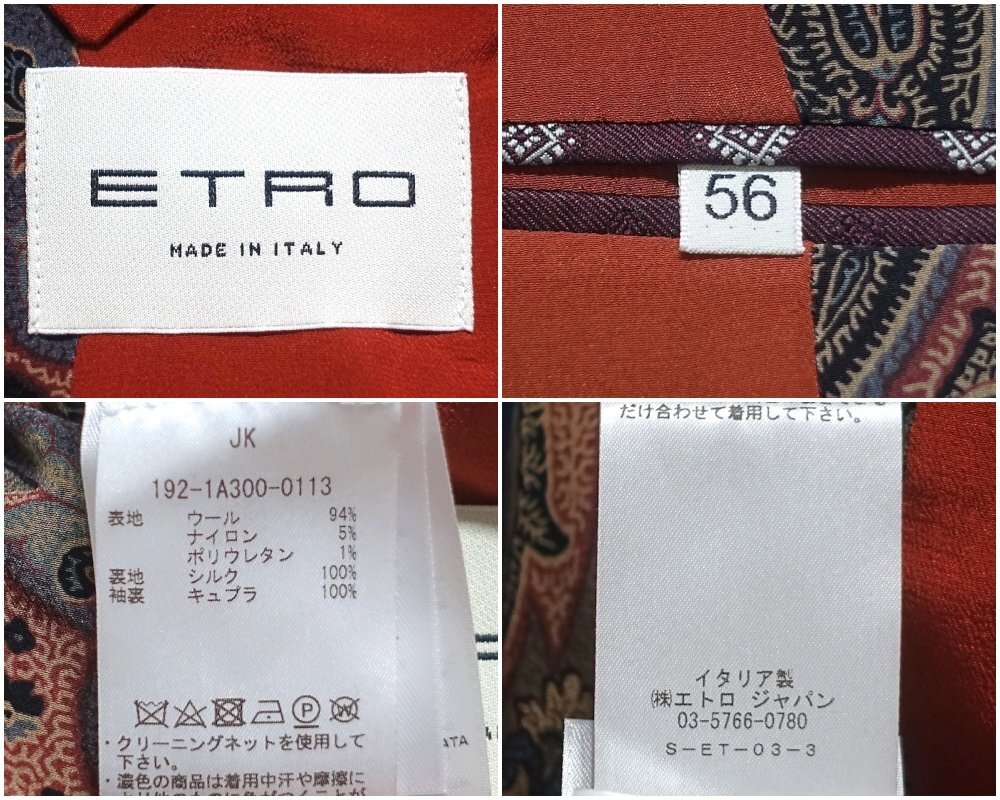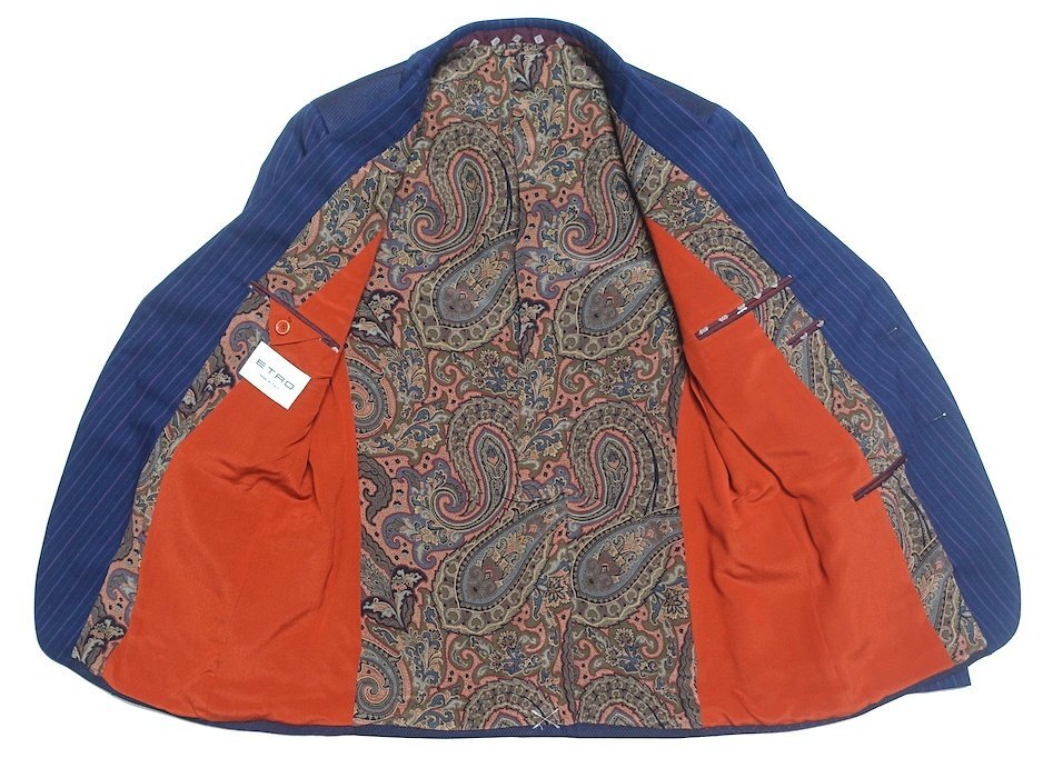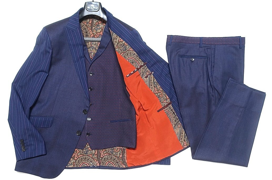 19AW 定価45万 新品未使用 極美品 ETRO エトロ ペイズリー柄裏地 3種切替 スリーピース スーツ セットアップ ネイビー メンズ 56